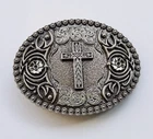 Western Belt Buckle for Men & Women Cowboy Rodeo Wear - Cross & Floral Pattern