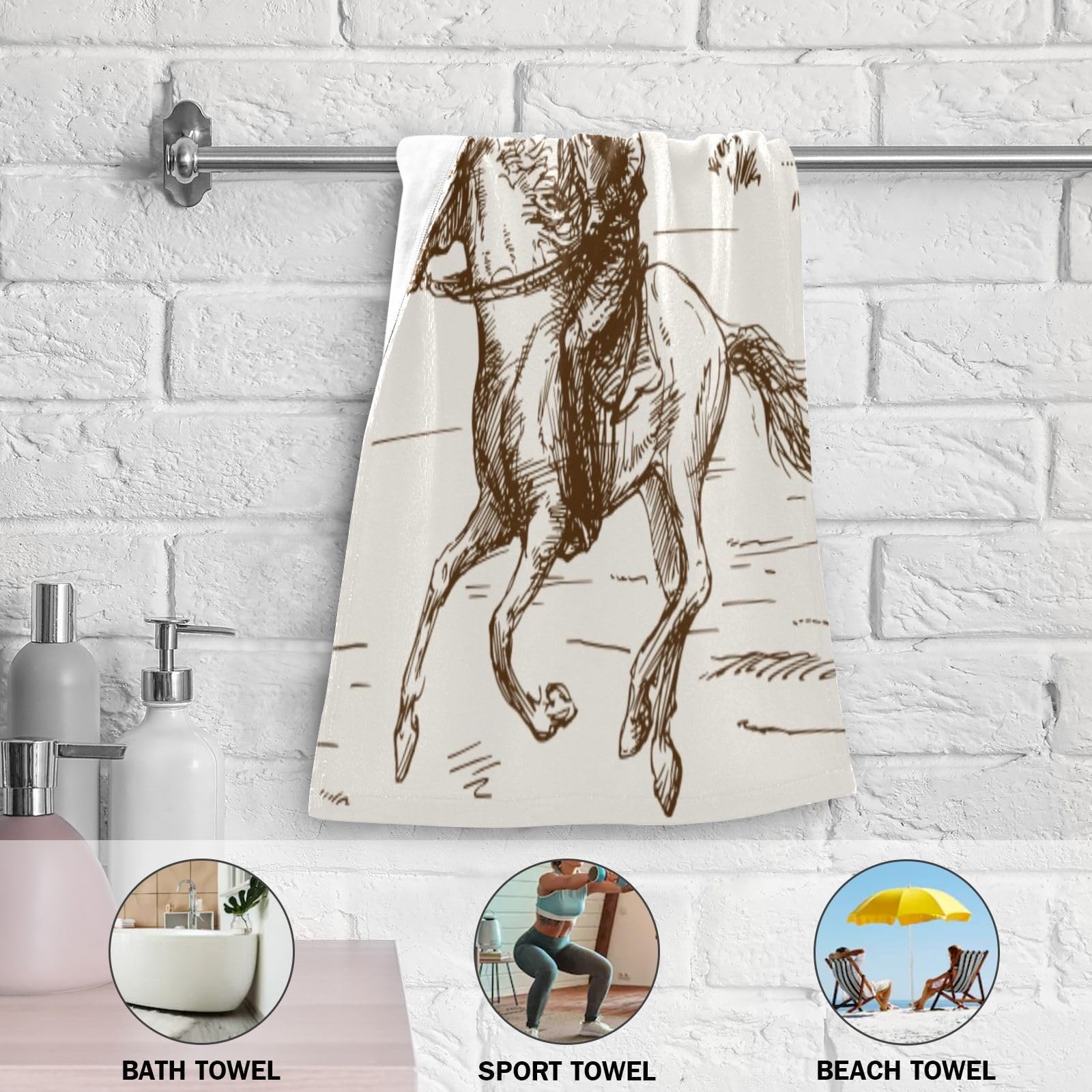 offers a range of highly absorbent and versatile towels set with various themes for you to choose from. Bring personality, fun, and addition to your space with the vibrant printing bathroom towels in home decor. You'll always find one that match perfect for you home decor. Package Include: 2 bath hand towels / 14x28 inches; Towel Material: The bathroom towels made by polyester microfiber front, white terry cloth back for quick drying. Lightweight, super soft and skin-friendly. Feature: Single-side printing towels with white terry cloth back; Super soft in touch, lightweight, quick drying; Reinforced edges to prevent unraveling; Vibrant colors with no fading; MULTI-USAGE: The bath hand towels are both functional and practical, can be used for a variety of purposes such as drying hands, face, hair, wiping dishes and decorative bathroom kitchen fitness. It can also be used as shower, guest, face, fingertip, hair, dishcloth, gym, spa and travel towel. The decorative bathroom hand towels are great gifts for housewarming, birthday, Christmas, Thanksgiving, holidays for women, men. EASY CARE: Our kitchen hand towels are machine washable. Wash with warm water less than 40℃. No iron and bleach. COWBOY TOWELS SET: The western towel set includes 2 brown cowboy hand towels of 14x28 inches, making them ideal for all your basic drying needs. ULTRA SOFT: These west desert cowboy kitchen towels are made of polyester microfiber and terry cloth. Soft enough for use on the face and strong enough for general household cleaning. Super soft and light-weighted. UNIQUE DESIGN: The american country cowboy bathroom towels are single-side printing towels. White terry cloth backing design enhanced highly absorbent and quick dry. Reinforced edges to prevent unraveling. Vibrant colors won't fade after multiple washes. Perfect addition to decorate kitchen sink, bathroom, guest bath, powder room. MULTI-USAGE: The western cactus bath hand towels are both functional and practical, can be used for a variety of purposes such as drying hands, face, hair, wiping dishes and decorative bathroom kitchen fitness. It can also be used as shower, guest, face, fingertip, hair, dishcloth, gym, spa and travel towel. The cowboy decorative bathroom hand towels are great gifts for housewarming, birthday, Christmas, Thanksgiving, holidays for women, men. EASY CARE: Our western horse kitchen hand towels are machine washable. Wash with warm water less than 40℃. No iron and bleach.