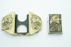 Product Details: Material: Zinc alloy heavy metal Measures: Length Size is, 4.02 inches, Height Size is, 2.36 inches, Weight is 5.4 oz Fits up to 1 1/2" wide belt strap Lead and nickle free Lighter Included (No fluid) Listing and template services provided by inkFrog