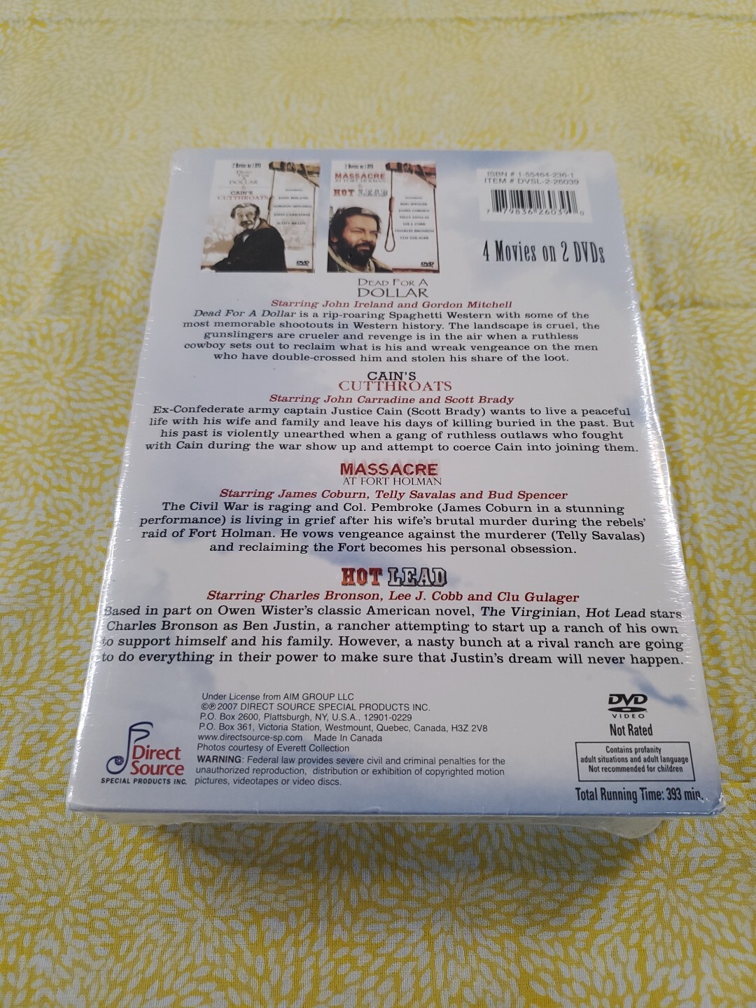 THANK YOU FOR VISITING OUR STORE. WE SHIP 6 DAYS A WEEK (UNLESS THERE IS A FEDERAL HOLIDAY). MOST ITEMS WILL SHIP IN A STURDY BOX AS NEEDED. PLEASE FEEL FREE TO REACH OUT IF YOU HAVE ANY QUESTIONS. WE WILL COMBINE SHIPPING WHEN AVAILABLE. Enjoy hours of classic Western action with WESTERN JUSTICE: 4 Movies (2-DVD) (New). This set includes four thrilling movies starring the legendary Charles Bronson, all formatted for DVD Region Code 1 (US, Canada...). Immerse yourself in the wild frontier of the American West with these exciting films, featuring Bronson's signature tough-guy persona and plenty of gun-slinging action. This set is brand new and ready for your viewing pleasure. Add it to your collection today!