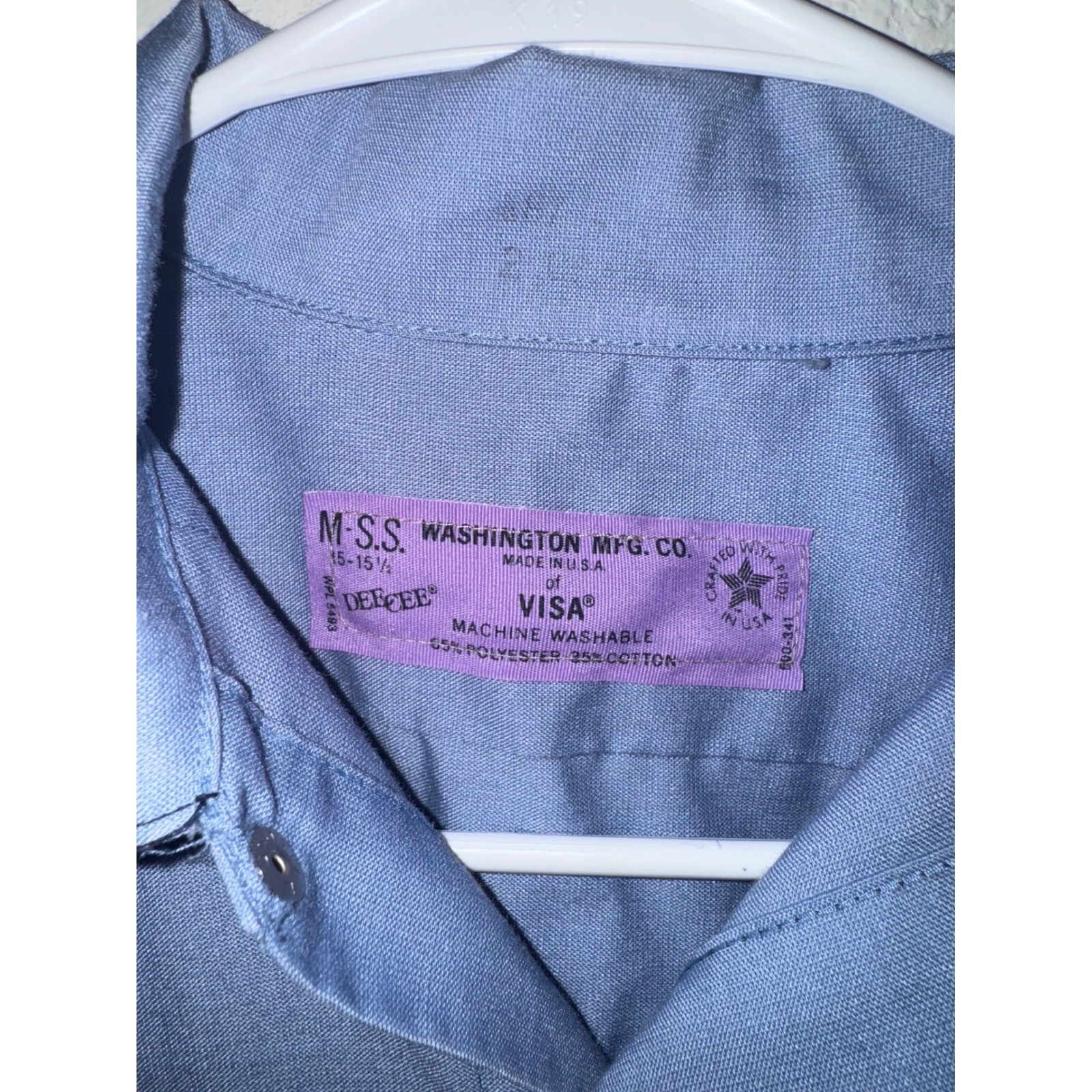 A classic western-style work shirt, featuring a light blue hue and short sleeves. This button-up shirt includes two chest pockets, adding both style and functionality. The shirt is designed with a distinctive western yoke on the front and back, enhancing its cowboy aesthetic. It's a versatile piece that combines traditional design with everyday wearability. Sleeve Length: Short Sleeve Department: Men Color: Blue Closure: Button Accents: Button Fabric Type: Twill Pattern: Solid Material: Polyester, Cotton, Cotton Blend, Polyester/Cotton Blend Fit: Regular Features: Pockets, Easy Care Type: Button-Up Collar Style: Point Neckline: Collared Keywords: western shirt, work shirt, short sleeve shirt, button up shirt, cowboy shirt, vintage shirt, retro shirt, blue shirt, mens shirt, western wear, cowboy style, classic shirt, casual shirt, visa shirt