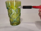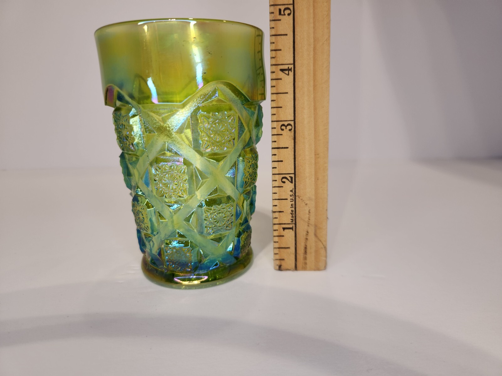 Westmoreland Lime Carnival Glass Tumbler Old Quilt Pattern Condition Comment: see image: on small chip in inconspicuous location.