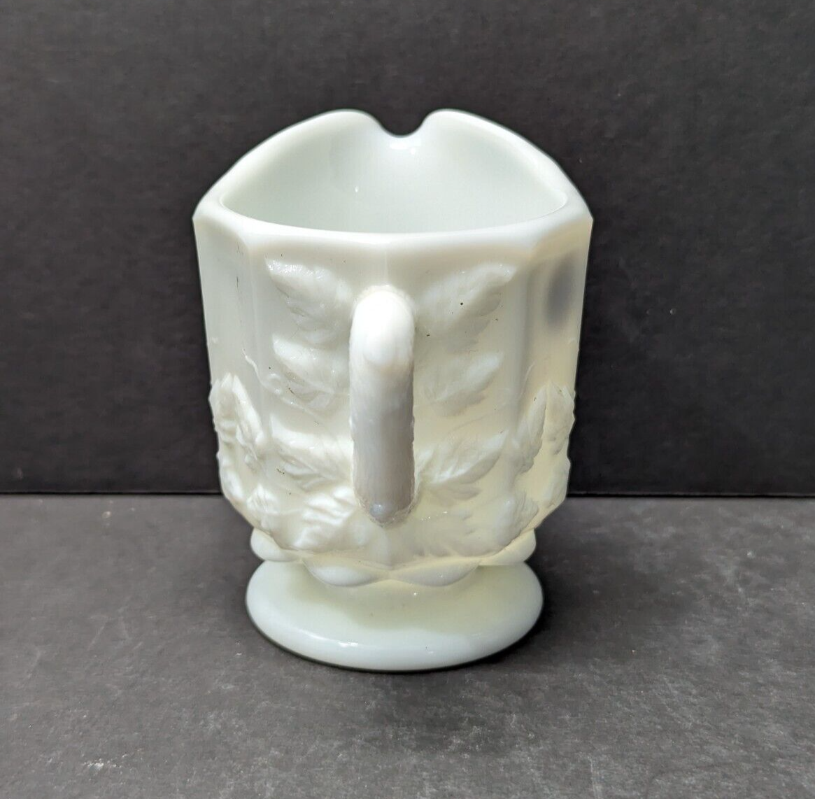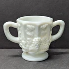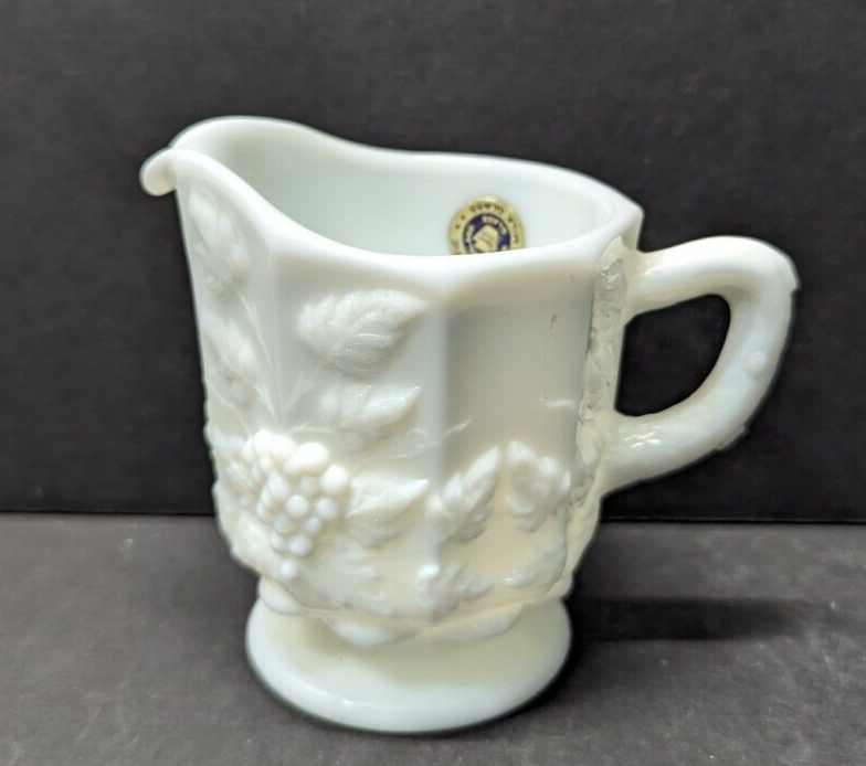 Westmoreland Milk Glass Cream and Sugar Set Paneled Grapes with Tags 3 inch tall Good Condition - see photos for details Items can ship with USPS Ground Advantage or USPS Priority Mail.