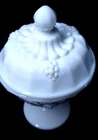 Finish:GlossyNumber of Items in Set:2Number of Compartments:1Time Period Manufactured:1950-1959Shape:RoundMaterial:GlassTheme:grapeOrigin:North CarolinaProduction Style:Milk GlassStyle:Mid-Century ModernBackstamp:ImpressedOriginal/Licensed Reproduction:OriginalProduct Line:Paneled GrapeFeatures:Lid Included, DecorativeColor:WhitePattern:panel grapeBrand:WestmorelandType:Candy DishProduction Technique:Fused GlassVintage:YesCountry/Region of Manufacture:United States