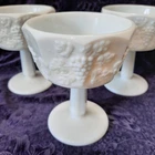 Add a touch of elegance to your dining table with this four-piece set of Westmoreland milk glass paneled dessert bowls. These bowls feature a beautiful grape pattern and come with a footed pedestal base, making them perfect for all occasions. The white color of the glass adds a classic touch to any table setting. Crafted in the United States during the 1960s, these original bowls are both charming and durable. With a bowl diameter of 3 inches and a height of 3.75 inches, they are the perfect size for serving desserts. Ideal for collectors or anyone looking to add a vintage touch to their kitchenware, these bowls are a must-have.