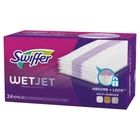 Wet Jet Cleaning Refill Pads Unscented Cleaning Accessories (24-Count) ABSORB + LOCK STRIP traps dirt & grime so it will not move around Safe on all finished floors, recommended for finished wood floors Contains 24 pad refills compatible with Swiffer Wet Jet Swiffer WetJet Multi-Surface mopping pads have a new ABSORB + LOCK STRIP that helps trap dirt & grime deep in the mop pad so it doesn't get pushed around. When you're done, just remove the pad and throw it, and all that dirt, away forever. Safe on wood & all finished floors. ABSORB + LOCK STRIP helps trap dirt & grime deep in pad so it doesn't get pushed around. For best end results on your hardwood floor, use with Swiffer WetJet solutions. There's a perfect solution for any cleaning need Safe on all finished floors**do not use on unfinished, oiled or waxed wooden boards, non-sealed tiles or carpeted floors because they may be water sensitive. Also try Swiffer WetJet Heavy Duty! Contains an extra SCRUBBING STRIP with the power of Magic Eraser Cleaning Tool Type Wet/Dry Mop Refill Pad Color White Color Family White Connection Type Gripper Bites Features Scrubbing Side Included Accessories No additional accessories included Mop Head Frame Material Plastic Mop Head Material Microfiber Mop Head Type Flat Mop Pack Size 1 Package Quantity 24 Returnable 90-Day Scent Unscented Manufacturer Warranty n/a Product Width (in) 11.3 in 11.3 inches. Weight: 0.0 grams