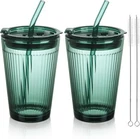 Design Style: You will receive 2*18.5 oz green drinking Jars with a pattern of whales tossing in the waves, their beautiful appearance will bring you a good mood. Larger at the top and smaller at the bottom, they are comfortable to hold. There are two ways to drink it: one way is to drink it directly, which is convenient and quick. The other way is to drink through a straw, lipstick or lip balm is not easy to come off. Leak-proof and portable. Quality Material: It is made of high-quality glass, including glass straw and lid, you can choose to use it or not. Its durable and anti-wear thanks to its thickened wall and base. They are lead free, BPA free, food-safe grade, it is comfortable to the touch and durable to use. Specification: The height: 6.61"/16.8cm, diameter: 3.43"/8.7cm, straw length: 8.66"/22cm, the capacity is 550ml/18.5oz. Packing Includes: 2 packs, 2cups and 2 straws. You can conveniently put them in the dishwasher for a thorough clean, saving you the hassle of hand washing. Amazing Gift: This tumbler has a large capacity and is suitable for a variety of beverages, such as juice, lemonade, milk, cocktail, tea or soda. Suitable for indoor and outdoor activities, enjoy a good time. Ideal for friends, family, colleagues, teacher. Great for Christmas, Thanksgiving, birthdays, parties, weddings, housewarming parties, graduation ceremonies gifts. BRAND SERVICE: If you have any issue with our drinking glasses, please contact us via "Contact Seller". We will reply within 24 hours and propose solutions to solve your problem till you are satisfied.