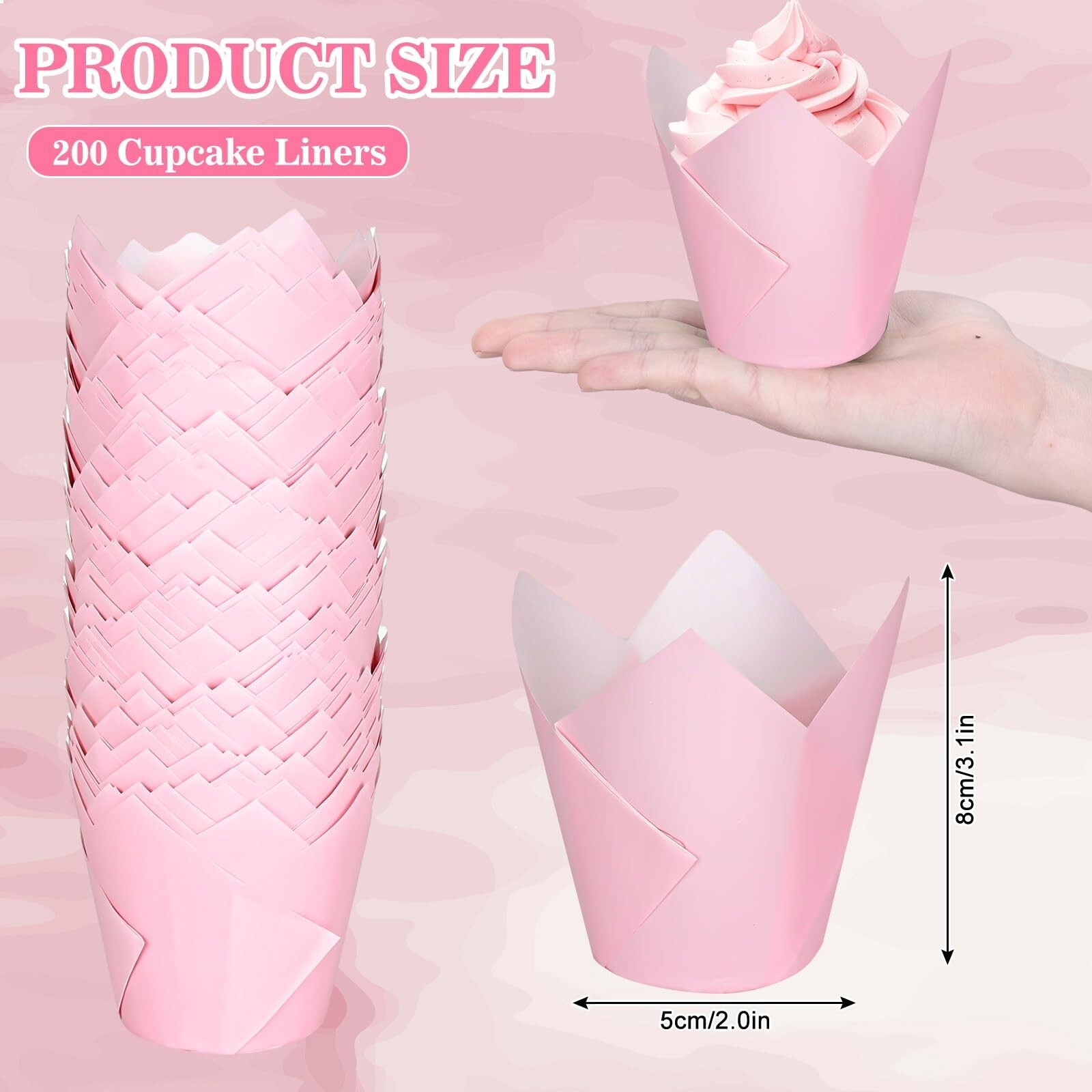 Whaline 200Pcs Pink Tulip Cupcake Liners Greaseproof Muffin Baking Liners Tulip Cupcake Wrappers Baking Cup for Bridal Baby Shower Wedding Birthday Party Decor Product Details Color: Pearl Pink Brand: Whaline MPN: W13412 UPC: Does not apply EAN: Does not apply Color: Pearl Pink Brand: Whaline Material: Paper Reusability: Disposable Occasion: Bridal Shower, Wedding, Baby Shower, Birthday Color: Pearl Pink Brand: Whaline Material: Paper Reusability: Disposable Occasion: Bridal Shower, Wedding, Baby Shower, Birthday Material Feature: Disposable Shape: Round Size: 2 x 3.1 inch Manufacturer: Whaline Number of Items: 200 Item Diameter: 2 Inches Item Weight: 7.8 ounces Item model number: W13412 Date First Available: May 17, 2024 Pink Tulip Cupcake Liners - Featuring pink and tulip shapes, refined and elegant, these cupcake liners are perfect decorations for party table. Abundant Quantity - A total of 200pcs Cupcake liners with the same design, are included in the package, sufficient to meet your daily use or party supply. Safe To Use - Made of quality paper material, these disposable cupcake wrappers are safe, odorless, wrinkle resistant and grease-proof, you can rest assured to use. Size Details - The bottom diameter of each cupcake wrapper measures about 2 inches, and it measures about 3.1 inches in height, lightweight and easy to carry or store, suitable for holding cakes, cookies, muffins, candies, chocolates, cakes, nuts, pastry and other snacks. Wide Application - Our cupcake wrappers can be applied in many occasions, such as baby shower, bridal shower, wedding, birthday, garden party, tea party and other occasions. Features & Benefits: 200pcs cupcake liners, delicate and lightweight, made of premium paper material, safe and odorless, abundant quantities that can meet your needs for daily use or party supply. Our cupcake liners can be applied in many occasions, to hold cakes, muffins, cookies, candies, chocolates, nuts, pastries and other snacks, perfect for party table decor. Specifications: Size: 2 x 3.1 in Material: paper Package includes: 200 x cupcake liners