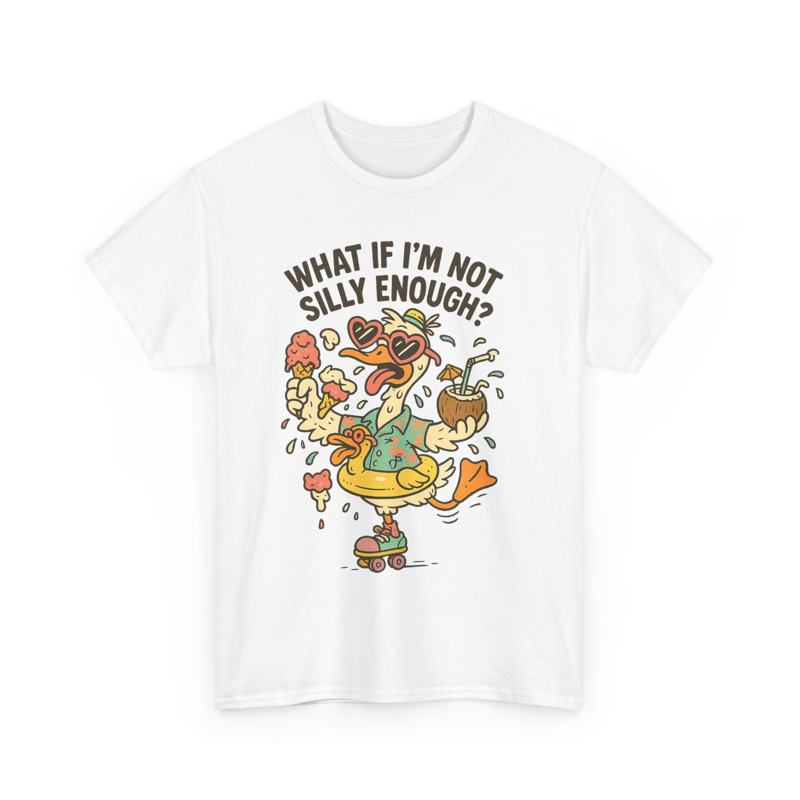 🦆 Product Description Ever wonder “ What If I’m Not Silly Enough? ” This playful silly goose shirt answers with style! A top funny animal graphic tee for bird lovers and meme fans alike, it’s perfect as a quirky unisex tee or animal lover gift . Crafted from 100% cotton , this novelty goose shirt brings laughs to every casual outing. ✔ Key Features: 100% ring-spun cotton for softness & durability Classic unisex fit — true to size, S–5XL available High-definition DTG print: “What If I’m Not Silly Enough?” artwork Ideal as a novelty goose shirt or unique graphic tee Lightweight, breathable — perfect for everyday wear Printed & shipped from the USA — fast turnaround 🎁 Perfect Gift Surprise the playful spirit in your life with this hilarious design — great for birthdays, holidays, or “just because.” 📌 Product Specifications Material: 100% ring-spun cotton Weight: Medium (5.3 oz/yd² / 180 g/m²) Fit: Unisex classic Print: Fade-resistant DTG graphic 📏 Size Chart 📐 Inches Size Width Length Sleeve S 18.00 28.00 7.75 M 20.00 29.00 8.25 L 22.01 30.00 8.25 XL 24.02 31.00 8.76 2XL 26.03 32.00 9.26 3XL 28.04 33.00 9.77 4XL 29.97 34.00 10.24 5XL 31.97 35.00 10.75 📐 Centimeters Size Width Length Sleeve S 45.70 71.12 18.40 M 50.80 73.66 19.70 L 55.80 76.20 20.90 XL 60.90 78.74 22.20 2XL 66.00 81.28 23.50 3XL 71.10 83.82 24.80 4XL 76.30 86.36 26.00 5XL 81.20 88.90 27.30 📦 Combine Shipping 🛍️ Visit Our Shop ⚠️ Note: Made-to-order items cannot be refunded if sized incorrectly.