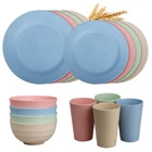 Plastic Dinnerware Set for All Occasions: This 16-piece dinnerware set includes 4 pieces each of 10.5-inch dinner plates, 9.5-inch salad plates, 5.7-inch (24 Fl Oz) plastic bowls, and 3.35-inch (16 Fl Oz) blue plastic cups. Safe and Non-Materials: Made from natural organic wheat straw fiber and BPA-free, food-safe PP materials, this dinner dishes set is a healthier choice for your family and environmentally sustainable. Ideal for parties, picnics, camping, and daily use at home, school, or the office. Lightweight and Durable: These wheat straw plates, dishes and blue cups are light, easy to handle, and far more durable than ceramic and glass, making them perfect for all ages and every meal, from breakfast to dinner. Versatile Usage: Perfect for serving a variety of meals, including pasta, sandwiches, bread and butter, desserts, soups, rice, salads, and appetizers, these plates, plastic dishes and bowls sets will enhance your dining experience with their aesthetic appeal. Space-Saving Dinnerware Set: The stackable design of this plates and bowls dinnerware set ensures compact storage in your kitchen cabinet or dish rack, preventing toppling and saving space.