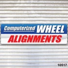 Wheel Alignments Banner Auto Repair, Tire Dealer, Service Bay, Garage Banner Sign 13 oz Indoor/Outdoor Vinyl Full Color High Definition Imprint Hemmed Finished Edges Grommets every approximately every 2ft.