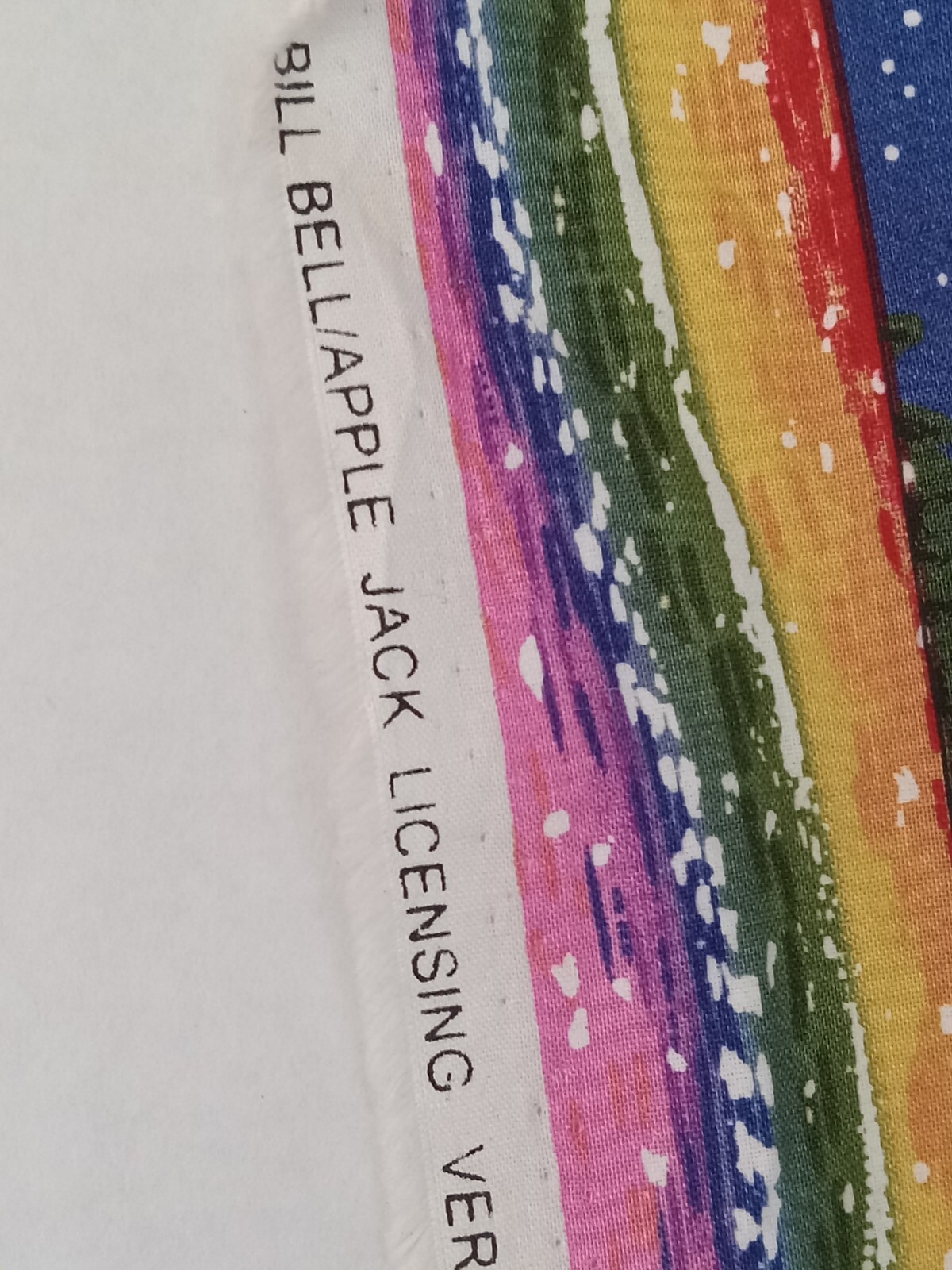 Add some whimsy to your next project with this colorful printed fabric panel featuring a delightful garden rainbow animals. Measuring 44 inches in length and 30.5 inch wide this panel is perfect for quilting and crafting. Made from high-quality cotton material, it is both durable and soft to the touch. The panel is produced by Apple Jack Licensing Vermont and features a vibrant multicolor pattern that is sure to brighten up any room. Is new and unfinished. Design is called Creation.