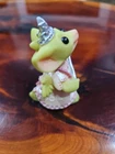 This whimsical figurine from the Pocket Dragons collection features a handmade green Princess Dragon in a fantasy-themed design. Created in resin during the 1990s in the United Kingdom, this collectible piece is part of the charming world of Pocket Dragons, perfect for any dragon enthusiast or fantasy lover.