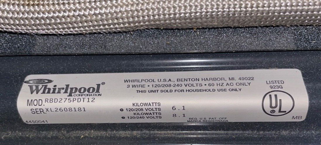 Taken from a 27" Whirlpool double oven, model RBD275PDT12. Original manufacturer color designation is BISQUE. Two doors are available. Pricing is for single door only.