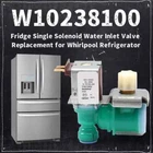 Part Number compatibility: The Single Solenoid Water Inlet Valve Part Number: EA2579779, PS2579779, W10498992, WPW10238100, AP4537880, 1872938, AH257977, designed to be compatible with various models from different brands, providing a universal solution for your water inlet needs. Made of reliable materials for long-lasting durability: This inlet valve is made of stable materials, including stainless steel and durable plastics, which ensure that it will last for a long time and withstand regular use. Easy to install : The W10238100 valve is designed with a compression inlet measuring 5/16 inches and a compression outlet measuring 1/4 inch, both of which are equipped with a sturdy plastic compression nut for a secure fit. The valve coil is rated 20 Watts and 120 Volts with 1/4 inch terminals, ensuring that it will work consistently and effectively over time. Controls the flow of water into your fridge's ice maker and water dispenser: This valve is responsible for controlling the flow of water into your ice maker and water dispenser, ensuring that you have a steady supply of fresh ice and cold water. Effective replacement: The W10238100 Fridge Single Solenoid Water Inlet Valve Compatible With Whirlpool 1872938 PS11750831 WPW10238100 AP6017532, 20W 110/120V 50/60HZ Water Inlet Valve offers a well-structured, reliable design.