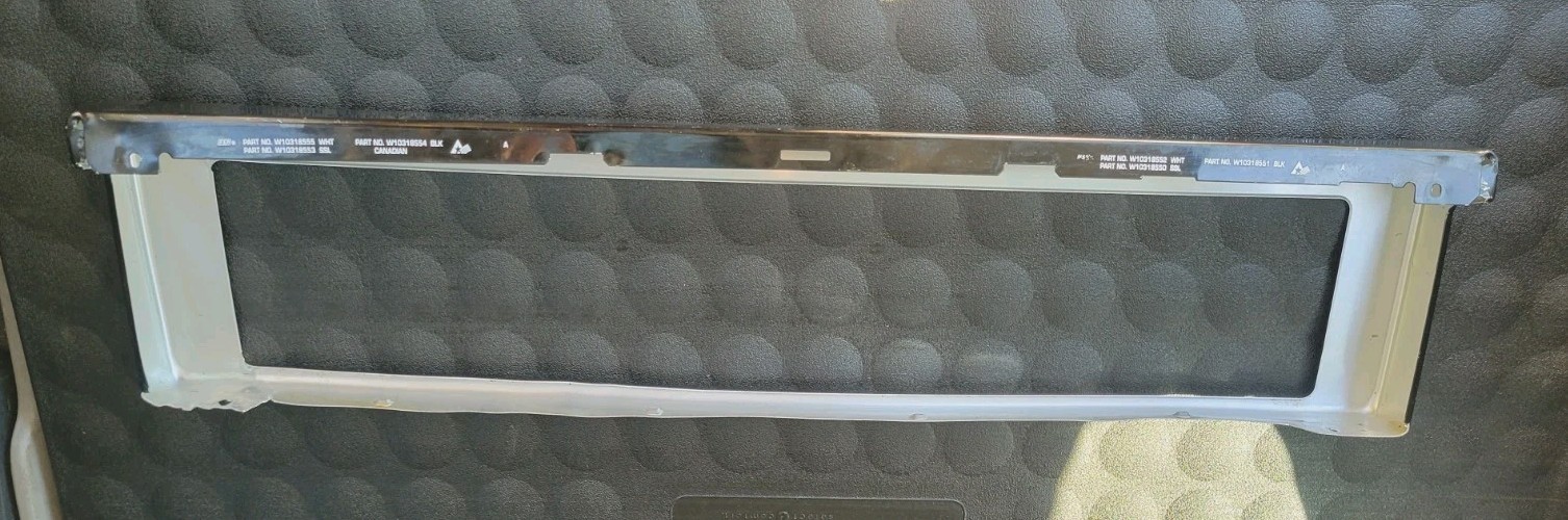 This is the surround for the Whirlpool model number W10694071B. It has a slight bend on the bottom right facing side. The scratches on the bottom left bolt side should be inconsequential as they will not be seen. This aluminum bends very easily. It's clear why there's demand for this surround. Small scratches but nonetheless As-Is Awesome The Genuine Whirlpool Gold Series Double Range Oven Control Board, model number W10694071B, is designed for freestanding electric ranges. It is compatible with Whirlpool brand appliances and is suitable for range ovens. This control board surround has part number W10318551 BLK, is not in mint condition with small bends and small scratches and is specifically made for the Whirlpool Gold Series Double Range Oven.