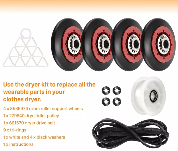 US Warehouse - FREE & FAST Shipping in USA YWED94HEAW0 Whirlpool Heavy Duty Dryer Rollers Pulley Belt Kit Package Includes: (As shown in the picture) Feedback 1.Any question for your order, please contact us in time, we will reply to you within 24 hours and give you a satisfactory answer. 2.If you are satisfied with our products and services, hope to take up your a little precious time to leave feedback reviews for our products.Thanks! 3.Your satisfaction is our effort. Welcome to order again! Have a great day! Our Policy 100% Satisfaction Guarantee Free and Fast Shipping in USA, US Warehouse 20% of restocking fee will be charged for return item.