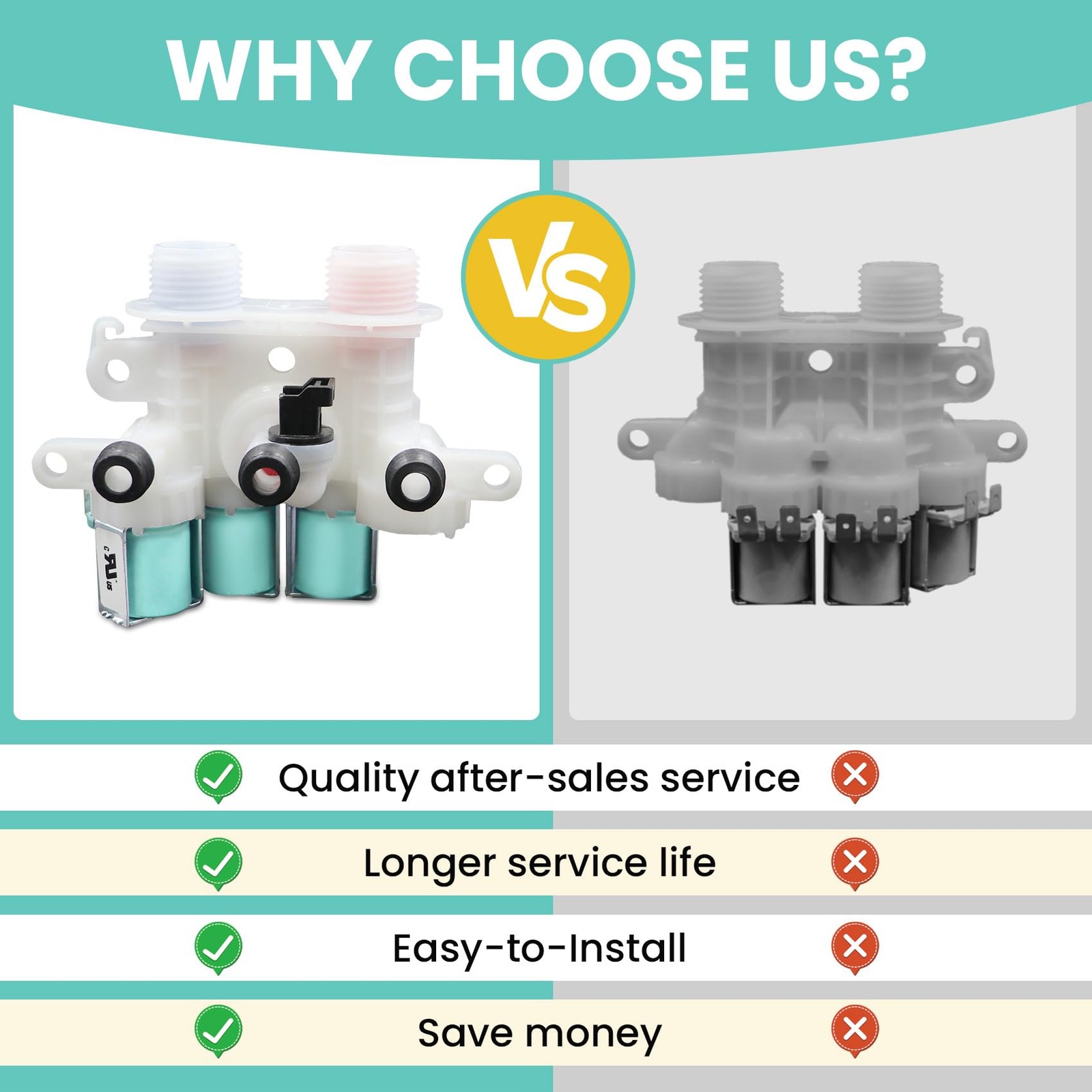 W11096268 (W11220230) water inlet valve:W11096268 (W11220230) water inlet valve controls the water flow into the washer.W11096268 (W11220230) water inlet valve has two threaded ports to control hot and cold water respectively.(120V 60Hz) Directly Replaces:W11220230 W10632527 W10758829 W10853296 W11096268 AP408 PS12349461 EAP12349461 etc. Solve The Following Problems:Compatible with whirl-pool ken-more error codes: E1 F8 FL LF LO etc. The washer not to fill properly or not fill at all etc. Fits Brands and Compatible Models :Compatible with whirl-pool ken-more etc.Compatible Models:7MWTW7000EW1 7MWTW7300EW0 7MWTW7300EW1 MVW6200KW0 MVW6230HC0 WTW6120HC0 WTW6120HC1 WTW6120HW0 WTW7000DW0 WTW7000DW1 WTW7000DW2 WTW7000DW3 WTW7000DW4 WTW7040DW0 WTW7040DW1 WTW7040DW2 WTW7120HC0 WTW7300DC0 WTW7300DW0 WTW7300DW1 WTW7300DW2 WTW8000DW0 WTW8000DW1 WTW8000DW2 WTW8000DW3 WTW8000DW4 WTW8000DW5 WTW8040DW0 WTW8040DW1 WTW8040DW2 WTW8040DW3 WTW8040DW4 etc. Professional Customer Service:I hope our W11096268 (W11220230) water inlet valve can solve your problem.If you need any assistance, please contact our 24-hour online service team. continually provides the warm shopping experience for all customers.We will show you a sincere attitude and satisfactory solution.