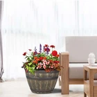 Made from durable polypropylene plastic, the Better Homes and Gardens Rustic Whiskey Barrel Planter is lightweight and UV-resistant, will not crack or color-fade over time. With its classic wood and decorative look, this pot will fit into any indoor and outdoor setting. The planter pot has been carefully designed to replicate the feeling of an aged wine cask with detailed wooden grain and metal bands which held the cask together. This gives the pot a warm and genuine feeling of wood but made with recycled plastic to give it a long-lasting life. This flowerpot has molded “easy to knock-out” drainage holes for both indoor and outdoor use. No drilling is required. This makes the water flow which can protect the roots and prevent plant stress and root disease. Pots with drainage holes are beneficial for increasing and boosting the life of a potted plant. Better Homes & Gardens 20" Whiskey Barrel Planter Made from 50% certified recycled plastic Fade, frost, and weather resistant Easy knock-out drainage holes allow excess water to empty Perfect for use indoors in a variety of rooms or outside on patios, porches, in gardens, on walkways, and more Product weight: 4lbs. Arrives fully assembled Easy to care for, simply wipe down as needed with a clean damp cloth after emptying all contents Can hold up to 11.9gallons Crafted of polypropylene resin for a long life of use almost anywhere An ideal planter for succulents, ferns, flowers, and other house plants Great for the home, in the office, and more We recommend using a protective barrier to prevent water damage to tabletops and other surfaces Dimensions: 20" Dia. x 13" Height Bottom Diameter: 12.3" Color: Brown