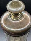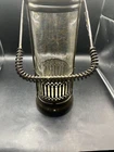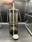 This whiskey decanter is a unique addition to any bar collection. Crafted from brass and glass, it features a vintage music box that plays the classic tune "How Dry I Am". With a beige color and farmhouse style, this decanter is perfect for all occasions. Measuring 11 inches in height and with an unknown capacity, it comes with a dispenser and is ideal for storing and serving your favorite whiskey. Made from high-quality glass and metal materials, this decanter is sure to impress. Cork stuck in top but stopper is intact