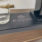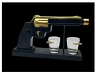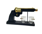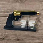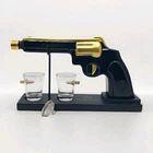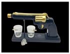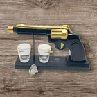 THIS VERY UNIQUE WILD WEST THEMED, PISTOL SHAPED, DECANTER DRINK SET, IS IN NEW / OPEN BOX CONDITION. IT HAS NEVER BEEN USED, AND WAS ONLY OPENED TO VERIFY ITS CONTENTS, QUALITY, AND TO TAKE DETAILED PHOTOS. IT IS NOT AVAILABLE ANYWHERE ELSE, THIS IS THE ONLY ONE ON THE INTERNET!!! IT WAS GIVEN AS A GIFT TO SOMEONE THAT WAS ASSOCIATED WITH JC SUITES!!! PLEASE LOOK AT ALL PHOTOS, THEY ARE OF THE ACTUAL ITEM YOU WILL RECEIVE!!! ☆☆GREAT GIFT IDEA FOR THE SPECIAL MAN IN YOUR LIFE!!!☆☆ This JC SUITES whiskey decanter set is the perfect addition to any bar collection. The set includes a 0.4 qt capacity black and gold colored decanter, two bullet melting shot glasses, a funnel, and a wooden base/display. The set features an art deco style and a wild west theme, making it a great gift for any occasion. The decanter set is made of high-quality materials including wood, glass, and metal. It also comes with a stand and is presented in a gift box. This set is perfect for those who appreciate unique and stylish bar accessories. I SHIP FAST, SAME OR NEXT BUISNESS DAY ALWAYS!!!