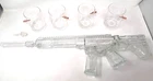 T he Whiskey Decanter Set by The Wine Savant is a modern and stylish addition to any home bar. Father's Day is coming, this would make a Great Gift for any DAD!! This set includes a Large clear glass decanter featuring a unique AR-15 design, complete with silencer and bullet stoppers. The set also includes 4 rock glasses and a Black display base, all elegantly presented in a gift box. Made of high-quality glass, this decanter set is perfect for whiskey enthusiasts looking to add a touch of sophistication to their collection.