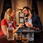 Introducing our premium whiskey decanter set, a luxurious addition to any gentleman's collection. This exquisite set includes a high-quality crystal decanter and glasses, perfect for enjoying your favorite liquors in style. Crafted for durability and safety, this set is ideal for savoring various spirits. Whether it's bourbon, whiskey, or other liquors, this set provides a sophisticated drinking experience. Packaged in a deluxe box, this set makes a memorable gift for any occasion. Elevate your drinking experience with our Whiskey Decanter Set, a must-have for any whiskey enthusiast. 【Whiskey Decanter Set for Men】crystal decanter set for alcohol is made of ultra-clarity glass.It is safe for you to enjoy scotch, bourbon, vodka, tequila and any other liquor. Bourbon decanter set with glasses is a must have for whiskey lovers. Memorable Whiskey Decanter Set】Whiskey decanter set comes with a deluxe gift box,fully protected with polyethylene foam.You will never worry about broken issue.The people who received this 5-pieces whiskey glass set will be happy.Ideal for men,husband,Friends, Birthday,Dad,Engagement,Anniversary,Christening or Christmas. 【Premium Quality & 】29 oz decanter and 4pcs 9.5 oz glass features with thick side and solid base design will not break and chip easily. Scotch whiskey decanter is heavy and durable offer you long time service. 【Elegant Italian Style Whiskey Decanter Sets】Elegant Italian-crafted crystal decanter set is with exceptional craftsmanship.Premium glass decanter set with polished finishing,distinctive light refraction makes an impression.It not only a glass, but also an artwork. The legacy of quality and beauty makes our products a showpiece for home or bar. 【Dishwasher Safe】High quality glass is dishwasher safe.Gorgeous whiskey glass set with decanter delivers the fullest flavor and a great drinking experience .