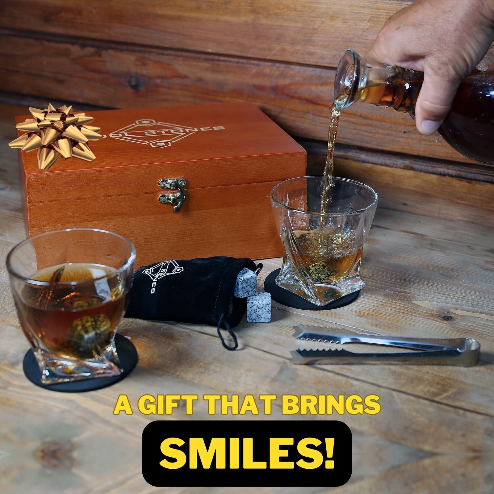 Wow, this set is seriously impressive! The glasses feel so substantial and the wooden box makes it feel like a premium, high-end gift. The whiskey stones are a game-changer for keeping my drink perfectly chilled without watering it down. An absolute home run for any whiskey lover!