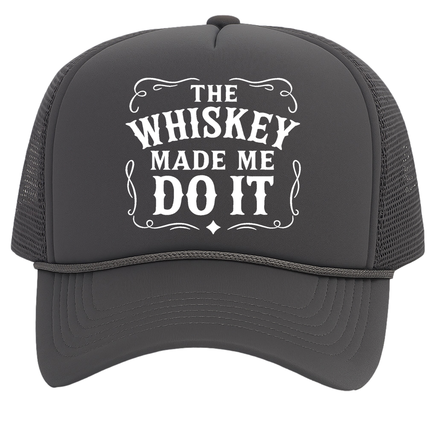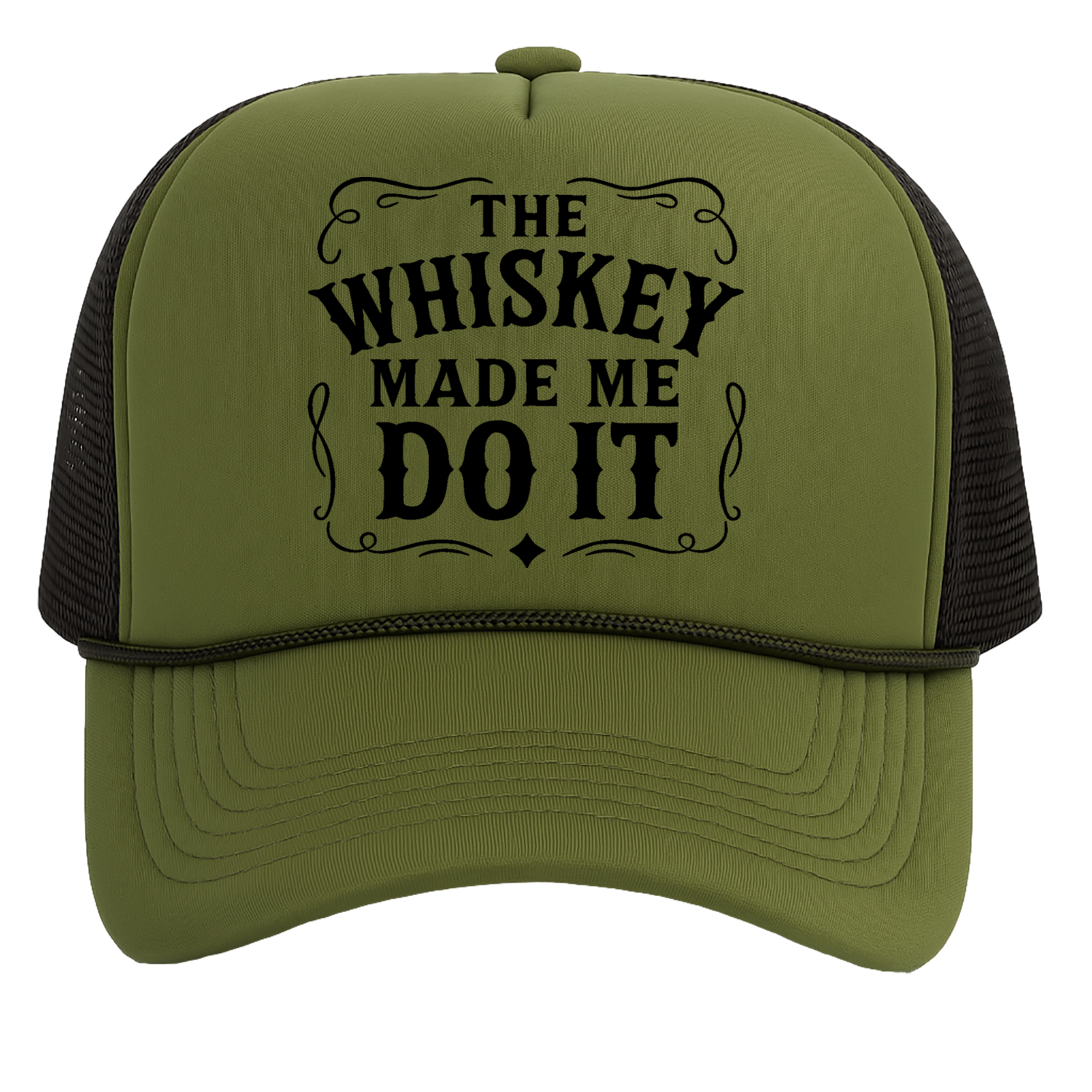 Gravitytrends Our eBay Store About Us Contact Us Add to Favorite Sellers Whiskey Made Me Do It Drinking Trucker Hat – Funny Snapback Cap For Men Women, Forest Green Let your cap do the confessing with our “The Whiskey Made Me Do It” trucker hat—a cheeky nod to nights that turned legendary with a glass (or three) of whiskey in hand. Crafted for whiskey drinkers, party starters, and the unapologetically bold, this hat is equal parts mischief and charm. It’s not just headwear—it’s a vibe, a statement, and a perfect icebreaker rolled into one. With its breathable mesh back, classic snapback fit, and rugged vintage style, it’s made to go from honky-tonk to hangout without missing a beat. Whether you’re buying it for yourself or gifting it to that whiskey-loving friend who’s never short on wild stories, this hat brings laughs, edge, and just the right amount of trouble. Bold & Playful Statement: Let your hat speak for those wild whiskey nights with its cheeky slogan. It’s a conversation starter for anyone who enjoys a good laugh and a better pour. Comfort That Lasts All Night: Designed with a breathable mesh back and adjustable snap closure, this hat stays comfy from happy hour to last call. The structured front keeps its shape, no matter how wild the night gets. Perfect for Whiskey Lovers: Whether you're at a backyard BBQ, country concert, or just chilling at the bar, this hat fits right in. It makes a fun and unforgettable gift for whiskey enthusiasts and party legends alike. Classic Trucker Style: The retro design and curved brim deliver timeless appeal with a rebellious twist. It’s the ultimate finishing touch for casual outfits that call for a little extra attitude. .
