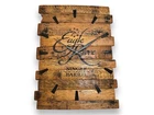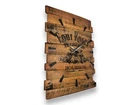 You love whiskey?! Sure you do, that is why you clicked on our best seller bourbon whiskey barrel clocks. Every clock is handcrafted from authentic whiskey barrel staves and of its metal hoops. The staves are laid out in a staggered like formation and sanded clean and smooth. This brings out the white oak's natural patinas and beauty. The number indicators are also handmade from the barrel's metal band. The whole entire timepiece is made from genuine reclaimed Kentucky barrels. Perfect for any whiskey lover and decor for your home bars or kitchens. Actually you can put it anywhere, it is a clock after all. Cheers! Dimensions: 24"x18" 12-15 lbs IMPORTANT NOTE: We use real bourbon barrel staves to make our clocks. Reclaimed barrel staves will have imperfections. They may have cracks, splits, smudges, and stains. Clock kit does NOT come installed. This is to prevent them from being damaged during shipping. If they do not work properly please let us know. We will send replacement right away. In order to hang the clock you will have to use 2.5" or 3" long nails or screws. They will have to stick out about an inch for the hanger to catch properly. Please use wall anchors or go into a stud because the clock is a bit heavy.
