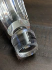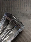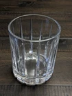 This is a decanter set for whiskey, bourbon, or other alcohol. The decanter comes with a stopper and two matching glasses. Not sure if it has ever been used. It is made of either glass or crystal. An internet search shows an identical decanter being sold under the name of "vintage Mikasa crystal", but I have been unable to verify if this is accurate. This set has no identifying marks on the glass. This is a very nice set - decanter and stopper are rather heavy. No chips, cracks, or scratches. The edge of the stopper bottom (the part that goes inside the decanter) looks worn on one side, but it appears to be how it was manufactured. The top edge has a small imperfection that is about the size of a period, but it is hard to tell if it is a blemish or just a small bubble near the surface of the glass. Both of these can be viewed in the attached photos. The decanter is 8.5 inches tall (12 inches tall with the stopper inserted), 4.7 inches wide, and inches deep. The glasses are 4 inches tall and 3 & 3/8 inches in diameter.
