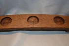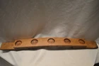This is a Bourbon/Scotch Glencairn glass flight tasting board. An absolute must for tasting different Whiskeys. It is made for 5 Glencairn glasses. It was made from a barrel stave and finished in an English Chestnut stain. A great addition to your Whiskey tasting party. Glasses are NOT included. Custom sizing available. Approximate dimensions: 29 inches long 3 inches wide 2 inch thick
