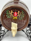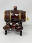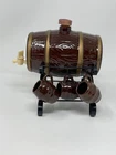 pre-owned vintage ceramic whisky barrel with 6 mini mug shot glasses on a steel frame has top cork and plastic faucet Please review all photos as they are part of the item's description, condition and details. Check out our store. We have a variety of unique items, old and new. More items listed every day. See something else that you like? Ask us to combine shipping. Packing slips are provided upon request only. Remember - the only stupid question is the question not asked. If you have any questions, please message us.