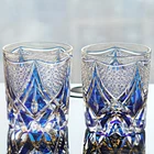Whisky Glass Tumbler Japanese Style Edo Kiriko Glass Hand Cut To Clear 9oz Blue