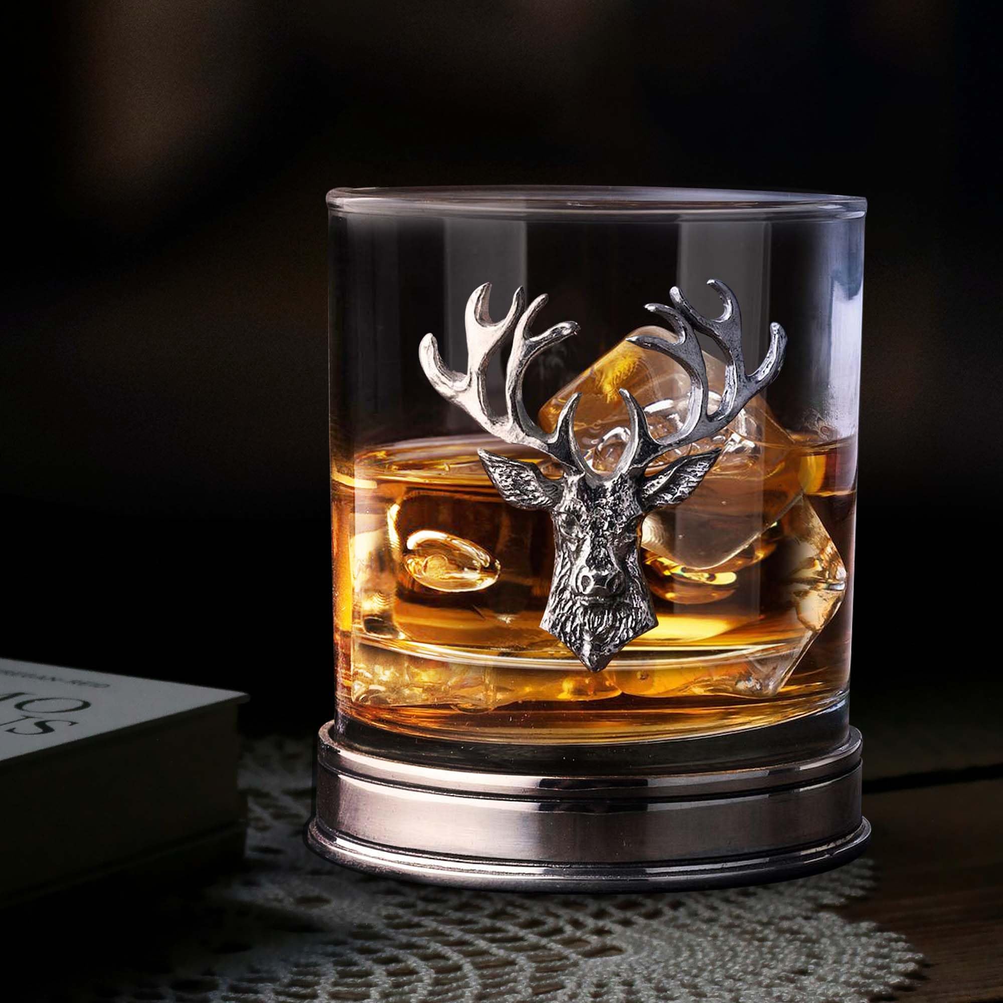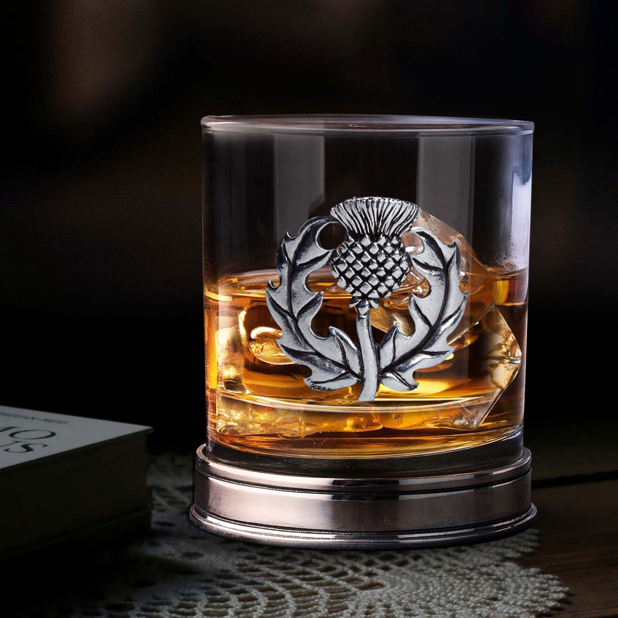 Enhance your whisky enjoyment with our handcrafted Whisky Glass, featuring intricate Highland Cow, Stag, Thistle, Pheasant, Plain, Celtic Knot and Lion Rampant designs. The glass is complemented by a premium pewter base, embodying the finest Scottish craftsmanship. Perfect for those who appreciate the depth of a single malt, this glass elevates every sip, bringing out the rich flavours of your favourite dram. Packaged in an elegant box, it makes a thoughtful gift for any Scottish occasion, from festive celebrations to intimate gatherings. Whether savouring whisky in the warmth of summer or the coziness of winter, this glass is your ideal year-round companion. Please note: Hand wash only to preserve its quality. Available in packs of 1, 2, or 3.