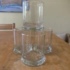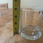 Set a four clear glass, heavy whiskey or beverage glasses. Wider at the bottom. Preowned and excellent condition no chips, cracks or scratches noted Barware drink
