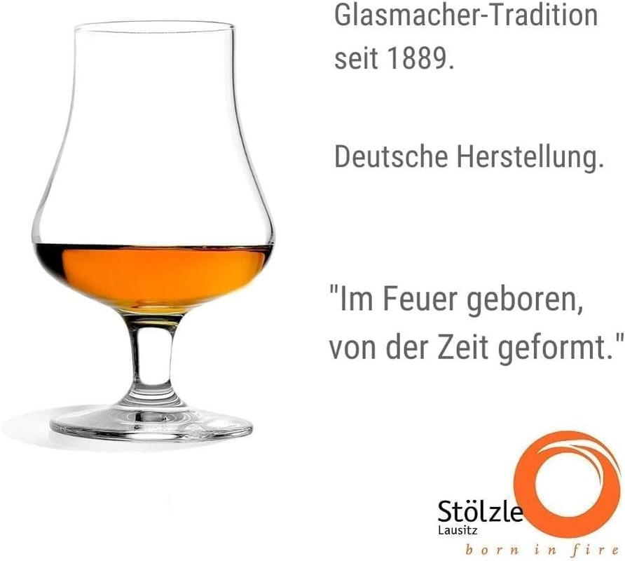 Brilliant lead-free crystal glass crafted in Germany Enjoy barrel aged whiskey and even craft beers with this German crafted nosing glass from Stolzle Lausitz. Crafted from brilliant lead-free crystal, this glass's bulb shape base of the goblet optimizes the development of the flavors allowing the subtle aromas to rise up through the tulip. The sturdy base and stem make it easy to swirl your drink to further releasing the full flavor. A great gift for connoisseurs of craft brews and aged whisky, the glass is conveniently dishwasher safe. 3" diameter x 5" H, with 6.5 ounce capacity