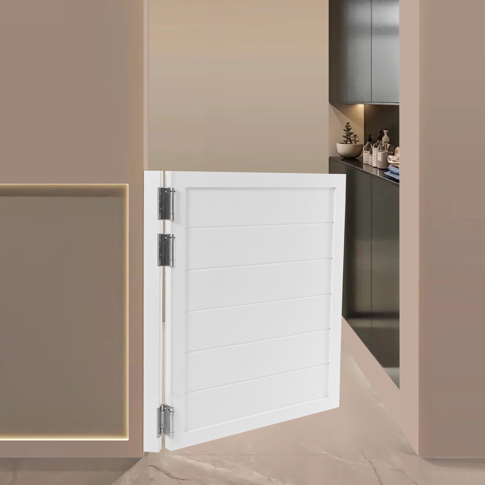 White 180° Partition Door Entrance Single Door 80cm*90cm Wooden Swing Door Welcome to our store~ Description This stylish partition door masterfully balances form and function, dividing spaces while elevating your interior decor. Its clever design provides the blend of privacy and openness, adapting beautifully to a room - be it a passageway, culinary space, or bathing area. Beyond its practical benefits, it brings an element of sophisticated charm to your living environment, transforming ordinary areas into thoughtfully arranged spaces. Why hesitate? Make this versatile addition to your home now! Key Features Exceptional Durability: Meticulously constructed from premium stainless steel and wood with a painting process, this product delivers exceptional hardness while maintaining resistance to wear damage or Arial for long-term reliable service. Flexible Opening/Closing: Featuring stainless steel dual-direction rebound hinges, it enables 180° two-way door opening and closing. The self-closing mechanism facilitates smooth entry and exit, with closing speed adjustable via hi nge elasticity c ontrol. Multifunctional Performance: It adds elegance to the room and provides privacy for your bar counter, porch, garden, and more. It can also be used to divide the space into different functional areas, making the layout reasonable and practical. Moreover, the half-waist door design can ensure air circulation to provide a comfortable indoor environment. Visually Appealing: With its attractive color scheme and clean straight line patterns, it adds a sophisticated touch to your space, blending seamlessly with various décor styles. Ideal Gift: Thanks to its practical design, unique appearance, and outstanding decorative effect, this product makes an ideal housewarming gift for friends. Easy to Clean: Thanks to its smooth surface and simple construction, you can easily clean it with a damp rag (not included)! Simple Installation: This product is simple in structure, equipped with complete accessories, and easy to install. You can finish the installation by yourself. Good Customer Service: We stand behind all our guests and look forward to assisting you with your purchase. It is our pleasure to answer your confusion and questions. The end of the story between us is not "we sell and you buy". Details Safety-Enhanced Edges: The smooth-edged design minimizes the risk of hand injuries during installation and everyday use. Enhanced Doorpost: Designed with reinforced thickness, the durable doorpost ensures a rock-solid installation base. Application This product serves as an ideal partition door. It is suited for installation in residential spaces, hallways, stairway entrances, shopping malls, reception areas, living rooms, clubs, balconies, terraces, cafes, bars, restaurants, kitchens, cashier counters, libraries, courtyards, office entrances, and various other settings. Hinge Installation Steps Lean the doorpost against the wall, make holes in the wall, and install expansion bolts (not included) . Fasten the hinges to the doorpost and the door. Insert a wrench into the adjustment hole of each hinge, and insert the pin. Adjust the bottom hinge in the same way. All hinges must be adjusted and installed simultaneously. Specifications Color: White Style: Modern Material: Wood, Stainless Steel Process: Painting Installation Required: Yes Opening and Closing Angle: 180° Thickness: 35mm/1.37in Doorpost Width: 5cm/1.96in Product Size(L*H): 80*90cm/31.5*35.43in Door Leaf Length: 74.5cm/29.33in Package Size: 97*87*9cm/ 38.19*34.25*3.54in Gross Weight: 11.4kg/ 25.13 lbs Net Weight: 10.83kg/ 23.88 lbs Package Included 1*Door Leaf 3*Hinges 1*Doorpost All Accessories for Installation Notes Please check the product size before ordering to make sure it fits your needs. Please note that the width of your door opening needs to be slightly larger than the overall width of the product for easy installation. Please allow the slight color difference caused by the shooting light and 1-3cm error due to manual measurement, and make sure you do not mind before you order. Welcome~ Payment Delivery details Terms of sales About us Contact us Payment We accept ebay payment 。 Fees such as import duties, taxes are not included in the item price or shipping costs. These charges are the buyer's responsibility. Delivery details Shipping: 2-9 working days to: USA Terms of sales We maintain high standards of excellence and strive for hundred percent customer satisfaction. Feedback is very important to us. We hope that you contact us immediately before you give neutral or negative feedback, so that we can address your concerns. It is impossible to address issues if we do not know about them! About us Your satis faction is our ultimate goal. We work hard to earn your trust and future business. Our certified technicians have tested each item before shipping. The unit comes with 1 year limited warranty on all manufacturing defects. a) If you receive a defective item, you may return it or ask for a discount. Please contact us within 14 days after you receive the package. b) What you returned must be intact and in its original packaging as re? u. Customer is responsible for shipping costs of the returned item. c) We will cover the cost of shipping back t with the shipping rate indicated in the registration page. We will send you a new unit or refund the full payment you paid. Thank you. Contact us Business Hour Business Hour: Monday To Friday: 8:30 AM to 5:00 PM (Beijing China time) Due to time zones, our reply to your questions may not be immediately. But within above working time, we will reply your email within 24 hours. If it's non-workdays, please kindly be patient and wait till Monday. Please contact us with ebay message. Please feel free to contact us if you have any questions. Monday To Friday: 8:30 AM to 5:00 PM (Beijing China time) Due to time zones, our reply to your questions may not be immediately. But within above working time, w