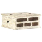 Featuring a rustic charm, this stunning wooden coffee table will make a timeless addition to your decor. Its solid table top provides a stable and secure surface, on which you can place drinks, vases, fruit bowls and other ornaments. This practical coffee table with 5 carved drawers will be perfect for placing multimedia appliances, books, magazines, or small items you'd like to keep within reach. Thanks to the sturdy construction and mango wood material, the table is exceedingly durable. Mango wood is a dense and robust hardwood which has beautiful brown or golden streaks and contours on its surface. Every step of the process is carried out with the greatest care, be it polishing, painting or lacquering. This item is already assembled; no assembly is required. Relax and enjoy a great time with your family and friends around this unique coffee table! Important note: Colors vary from piece to piece, making each piece unique. The delivery is random, ensuring the exclusivity and individuality of your product. Color: White Material: Solid mango wood Dimensions: 26.8" x 26.8" x 11.8" (W x D x H) Includes 5 drawers with carved pattern Finish: Polished, painted and lacquered Shipping Restrictions Due to the limited access of our couriers, this item cannot be delivered to the following locations: Alaska Federated States of Micronesia Guam Hawaii Marshall Islands Military Posts (APO / FPO) Palau Puerto Rico US PO BOX Virgin Islands Our customer support will contact buyers for orders with no shipment service, and these orders will be cancelled and fully refunded afterwards.