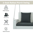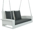 Notice: The suspension distance to avoid the uncomfortable seating experience due to inappropriate hanging position. Please note the suspension distance to avoid the uncomfortable using experience due to inappropriate hanging position. [Seats up to 2 Persons] Our wicker porch swing has a wide seat with a cushion and 2 back pillows, and 500 lbs weight capacity is safe enough. Thus, two people can easily sit together and enjoy your best outdoor with this fantastic swing. This makes it an excellent addition to your porch, backyard, patio, garden, or Deck. [High-Quality Wicker] The Wgite PE wicker is totally hand-made and can resist bad weather no matter rain or snow. Moreover, this wicker is durable and sturdy enough to keep. [Removable Cushion] Our wicker swing has one cushion and two pillows, is very comfortable for person to sit or lie down. And the seat cushion is zippered designed so the cover is easy to remove and wash. [Stable and safe] Our wicker porch swing ensures you a safer seating experience with thicker reinforced galvanized steel chains which is strong, rust-resistant and weatherproof. [Easy To Assemble] 50"L x 22.4"W x 20.5"H, comes with assembly instructions, our 2-person patio swing is super easy to put it together, a nice outdoor piece of furniture for the front porch or patio.Enjoy Your Leisure! Features : Product Type :Wicker Porch Swing Design :Modern Material :PE Wicker Steel frame Polyester Foam Color :White wicker Gray cushion Removable Cushions :Yes Pillows Included :Yes Weight Capacity :500 lbs Assembly : Adult Assembly Required :Yes Additional Tools Required :All Tools Included Product Dimensions : Swing :50"L x 22.4"W x 20.5"H Cushion thickness :2" Overall Product Weight :28.89 lbs Package Weight :35.56 lbs Products included: 1 x Wicker Swing 2 x Pillow 1 x Cushion