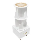 White 3 Tiers Bookshelf Display Rack Bookcase Storage Organizer(15.75*15.12In) Description In a limited space, this rotating bookshelf of ours elegantly holds unlimited wisdom and dreams for you. Selected high-quality materials ensure stability and durability. With a simple rotation, the books are at your fingertips. It not only saves space but also adds a touch of dynamic beauty to your living space. Have it and start a new journey of reading and living. Key Features Sturdy and Durable: The product is made of high-quality PVC board, using extrusion technology, with high strength, wear resistance , and long service life. Excellent Load-Bearing Capacity: The high-quality material and stable support on four legs allow this product to withstand a weight of 110.23 lbs , allowing you to rest assured when placing books, decorations, and other items on it. Helpful Organizer: The 2 open shelves with 8 compartments and top platform make it easy to categorize your books and other items while ensuring easy access. The bottom storage drawer organizes your personal items and blocks out dust, and its silent rails allow you to push and pull quietly and smoothly. 360° Rotation: With a built-in steel ball turntable, the upper shelf can be rotated 360°, you just need to flick to find the books you want without having to walk around, which greatly improves the convenience and efficiency of book retrieval. Space-saving: Its compact footprint (15.75*15.12ches) and vertical structure make you able to put it next to your sofa without taking up too much space. With the rotatable design, you can store more books or displays in a limited space, making it especially suitable for any environment where efficient space management is required. Easy Assembly: With complete accessories and a detailed English instruction, you can put it together yourself and enjoy the installation process. Easy to Clean: The waterproof and smooth surface and simple semi-open construction allow you to wipe off surface stains with a damp rag. Stylish Appearance: The versatile white finish and multi-functional structural design allow it to enhance interior décor, adding a modern and stylish touch to a living or working space. Nice Gift: With good practicality, you can give it as a gift to your friends or colleagues on Christmas, Thanksgiving, and other holidays. Details Exquisite Pad: A pad with a beautiful gold pattern prevents items placed on top from sliding around and also serves as a finishing-touch decoration. Raised Bottom: It is conducive to moisture resistance and facilitates cleaning. Book Stoppers: They allow books to be placed more stably on the bookshelf and prevent books from accidentally falling. Round Edges: Compared to traditional square corners, the burr-free rounded design is not only more comfortable to touch but also enhances safety in use. Application This product can be placed in living rooms, study rooms, bedrooms, children's rooms, classrooms, bookstores, libraries, cafes, bookstores, and other places to store books, magazines, collectibles, snacks, beverages, toys, stationery, photos, decorations, small potted plants, and other items. It can also be your nightstand. Specifications Style: Modern Color: White Material: PVC Board Process: Extrusion Mount Type: Floor Mount Assembly Required: Yes Number of Tiers: 3 Number of Drawers: 1 Max. Load Capacity: 50kg/ 110.23 lbs Rotation Angle: 360 ° Gross Weight: 8.5kg/ 18.74 lbs Net Weight: 8kg/ 17.64 lbs Shelf Diameter: 36.8cm/ 14.49 in Product Size: 40*38.4*90cm/ 15.75*15.12*35.43 in Package Size: 48*46*16cm/ 18.9*18.11*6.3 in Package Included 1 * Rotating Bookshelf 1 * Pad 1 * English Instruction 1 * Screwdriver 1 Pair* Gloves 1* Schematic Diagram of Sandpaper Grinding Other Accessories for Assembly Notes Please refer to the diagram and wear gloves provided during the installation process. Please note that children are prohibited from playing and climbing. When moving the bookshelf, please remove all items from it before moving to prevent them from falling and injuring you. The steel ball may be difficult to install for the inexperienced and it is recommended that you assemble it in pairs or seek professional help. Please allow the slight color difference caused by the shooting light and 1-3cm error due to manual measurement, and make sure you do not mind before ordering. Payment Delivery details Terms of sales About us Contact us Payment We accept ebay payment 。 Fees such as import duties, taxes are not included in the item price or shipping costs. These charges are the buyer's responsibility. Delivery details Shipping: 2-9 working days to: USA Terms of sales We maintain high standards of excellence and strive for hundred percent customer satisfaction. Feedback is very important to us. We hope that you contact us immediately before you give neutral or negative feedback, so that we can address your concerns. It is impossible to address issues if we do not know about them! About us Your satis faction is our ultimate goal. We work hard to earn your trust and future business. Our certified technicians have tested each item before shipping. The unit comes with 1 year limited warranty on all manufacturing defects. a) If you receive a defective item, you may return it or ask for a discount. Please contact us within 14 days after you receive the package. b) What you returned must be intact and in its original packaging as re? u. Customer is responsible for shipping costs of the returned item. c) We will cover the cost of shipping back t with the shipping rate indicated in the registration page. We will send you a new unit or refund the full payment you paid. Thank you. Contact us Business Hour Business Hour: Monday To Friday: 8:30 AM to 5:00 PM (Beijing China time) Due to time zones, our reply to your questions may not be immediately. But within above working time, we will reply your email within 24 hours. If it's non-workdays, please kindly be patient and wait till Monday