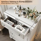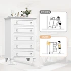 Vintage and Elegant Design: This tall dresser cabinet features rectangular stripes and vintage-patterned handles on the drawer fronts. At the same time, it adds a sophisticated feel to your room and complements a variety of decor styles, creating a warm and pleasant atmosphere for your home. Stable Structure: Quality and durability are key to our design. Our bedroom dresser comes with anti-tip accessories to ensure stability, giving you peace of mind during use. It is made of high-quality medium-density fiberboard, which is waterproof and easy to clean. In addition, the metal track ensures that the drawers run smoothly. Ample Storage Space: This wood dresser contains 5 wide drawers, on the tabletop of the dresser, you can display some decorations, and the interior drawers measuring 25.2'' W * 13.8'' D * 4.6'' H, provide enough storage space for clothes, blankets, and other accessories avoiding from clutter and keeping your space neat and tidy. Versatile Use: With a vintage and elegant design, this dresser for closet is perfect for a variety of environments including bedrooms, living rooms, and entryways, helping to keep your area tidy. Easy Assembly: Our chest of drawers comes with easy-to-follow instructions and clearly labeled parts for your convenience. If you encounter any issues during or after the installation process, we are always available to assist you. Product Description GAOMON Farmhouse 5 Drawer Dresser This tall dresser cabinet features rectangular stripes and vintage-patterned handles on the drawer fronts. At the same time, it adds a sophisticated feel to your room and complements a variety of decor styles, creating a warm and pleasant atmosphere for your home. 5 Spacious Drawers The interior drawers of this dresser measure 13.8"D × 25.2"W × 4.6"H . The large storage dresser of 5 drawers provides ample space to neatly organize toys, shirts, tissues, socks, underwear, and snacks in it, helping to keep your living space clutter-free. A Versatile Statement for Bedroom, Living Room, Hallway, and Entyway Wooden Support Legs Sturdy materials and construction ensure stability and durability High Quality Material This bedroom dresser offers exceptional durability and sturdiness for all your storage needs, with each drawer capable of holding up to 8.8 lbs. Vintage-patterned Handle The vintage-patterned handle is attractive and easy to pull for greater durability. Sturdy Mount Floor This thick wooden board can withstand a weight of 40 lbs and can be used to place decorations such as books and vases on the tabletop of the dresser. 1 White 2 Grey 3 Black Different Colors of Dresser Dimensions 15.7"D x 31.5"W x 48"H Dimensions 15.7"D x 31.5"W x 48"H Dimensions 15.7"D x 31.5"W x 48"H Color White Color Grey Color Black Item Weight 102.2 pounds Item Weight 102.2 pounds Item Weight 102.2 pounds Style Vintage Style Vintage Style Vintage Room Type Bedroom, Living Room, Hallway, Entryway Room Type Bedroom, Living Room, Hallway, Entryway Room Type Bedroom, Living Room, Hallway, Entryway