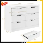 PRUDCT DESCRIPTION Features 1. Fashionable appearance This innovatively designed multifunctional with black handle drawer storage cabinet has an elegant white finish, which perfectly matches your home furnishings. 2. 6 drawer storage space The white drawer's 6 drawers are very suitable for storing daily necessities. The spacious space can store your belongings and keep your home tidy. 3. Top storage space Put some albums, collectibles and decorations on the top of the white cabinet, which will become a beautiful scenery in your home. 4. Smooth slide rails The drawers of this bedside table use smooth slide rails, which can easily push in and pull out 6 drawers. 5. Smooth surface The surface is spray-painted, so that the surface of this dressing table can be easily cleaned without water, and it can be used for a long time by keeping it dry. 6. Safety and fall prevention The fall prevention device can protect you and your family. The cabinet will be very stable and safe to use. Specification - Color: White - Material: Wood - Overall size: 47.1 x 14.9 x 31.4 inch - Drawer size: 21.7 x 7.8 inch Package Contents - 1 x 6-drawer white storage cabinet - 1 x Accessory - 1 x Instruction If you have any problem towards the order you received,please feel free to contct us,we promise will serve you and give you a satisfying solution.
