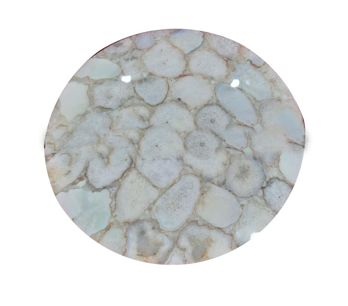 Welcome To Stone-Craft- Creations Shop Description Very unique Art by Indian Artist ,Coffee/Side Table top Used Material: Natural Agate Stones Arts Size: 21"x21" Inches Stand Size: 15" Inches Tall Color: As Photo Shape: Round Pattern: Handmade Room: Bedroom, Dining Room, Hallway, Home Office/Study, Kid’s Bedroom, Kitchen, Laundry/Utility Room, Living Room,Patio, Playroom Packaging: Wood & Foam Export Packing Shipping: Air Can Be customize ,Please Message us your desired Size 1. It can be used as a Dining Table, Guest table, coffee table, center table top in show room as well as a gift for your loved ones. 2. The table top is made in Agra India & fully handmade. 3. The top will be delivered by FedEx or DHL free of cost door to door. 4. If there is any local tax,custom duties or Vat will be paid by the buyer at the destination. 5. The parcel is dispatch with proper packing & fully insured covering all kind of risk. 6. To maintain the table top is simple soap & water & dry cotton cloth. 7. If You Are Looking Something Customize, Let Us Know We Will Make For You As Per Your Design, Size & Shape. Marble Agate Table Tops We are Manufacturer & Exporter of marble agate table tops. These marble agate table tops have different shapes like Round Table top, Octagonal Table Tops, Rectangle / Dining table tops, Square Table tops, Chess Table tops, Taj Mahal Table tops, Custom Designs Table tops also make marble Table top Base and Stand. Then we can be used as dining tables, coffee tables, Center tables, conference tables, chess boards, reading tables, bar tables , Garden table, side and corner tables or any other use as per the indoor and outdoor decor. They can also be placed outdoors in the garden, as marble is stain free, offers great resistance to the forces of nature, and can withstand heavy temperatures. We also meet customized requirement and offer our marble table tops at industry leading prices. About Agate Stone- Agate is a rock consisting primarily of cryptocrystalline silica, chiefly chalcedony, alternating with microgranular quartz. It is characterized by its fineness of grain and variety of color. Although agates may be found in various kinds of host rock, they are classically associated with volcanic rocks and can be common in certain metamorphic rocks. Ancient use of agate stone Agate is one of the most common materials used in the art of hardstone carving, and has been recovered at a number of ancient sites, indicating its widespread use in the ancient world; for example, archaeological recovery at the Knossos site on Crete illustrates its role in Bronze Age Minoan culture Types Of Agate 1. Fortification Agate This is the most common and distinctive type of agate. In these agates, bands crystallized into concentric layers that more or less follow the shape of the cavity. The banding resembles an aerial view of a fort 2. Water-Line Agate (also called water-level or onyx) During its formation, silica-rich solution either entered the cavity slowly laying one band at a time, excess water drained out leaving a small amount of silica to settle out into separate bands, or the vesicle filled under low pressure. In any case, the silica crystallization in water-level agates is controlled by gravity in one orientation, forming a stack up of parallel bands. 3. Shadow Agate Some agates exhibit a shadow effect in which there is what appears to be movement across the agate layers when the specimen is rocked back and forth (or your orientation to the specimen moves). This optical effect only occurs when there are alternating translucent and opaque bands. It is caused when light goes into the agate, but is not reflected out. 4. Tube Agate Tube Agate During the formation of some agates, parallel projections of tiny hair-thin mineral rods grow first within the silica gel, around which later the chalcedony agate micro-crystals form. In some cases the inclusions remain, but sometimes they weather away leaving hollow tubes that subsequently fill in with silica. 5. Eye Agates This mysterious agate characteristic is believed to be formed when most of the silica gel drains from the cavity, leaving only a droplet that “beads up” on the inside wall of the cavity. This droplet crystallizes into solid chalcedony “eyes”. In some cases, crystal growth will continue from this droplet in a manner similar to the formation of stalactites in caves. Later, the pocket fills in with the usual deposition of chalcedony microcrystals. 6. Plume Agate These agates initially had formations on their outside layer that formed prior to the deposition of chalcedony bands. They are filament growths of mineral inclusions that resemble ferns or feathers. 7. Geode Agate Geode Agate In some cases the supply of silica-rich water runs out before the entire cavity fills in. When there is a hollow center within a crystalline outer fill, the specimen is considered a geode. Not all geodes have agate banding, but many do. Also, the inner layers can form into several different types of silica mineral crystals and may even have other types of mineral crystals. 8. Moss Agate Moss Agate Moss agates have clusters of mineral inclusions that resemble plants, trees, or landscapes. Most moss agate inclusions are comprised of iron or manganese oxide. In some cases, the inclusions inhibit chalcedony banding allowing the mineral clusters free reign to grow within the silica gel. 9. Seam Agate Seam agates for in cracks within host rock, rather than in rounder pockets. The bands form in parallel rows that follow and fill in the crack or seam.