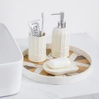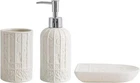 White Bathroom Accessories Set, Ceramic Set with Product Details Number of Pieces: 1 Finish Type: Polished Manufacturer: RZCNC Package Dimensions: 9.69 x 8.43 x 3.9 inches Item Weight: 1.85 pounds Item model number: 68220021 Fabric Type: Ceramic Finish types: Polished Batteries required: No Material: Ceramic Color: White Brand: RZCNC Style: Modern Included Components: Soap Dispenser, Toothbrush holder/Tumbler, Soap Dish Ceramic Elevate your bathroom decor with our Bathroom Accessories Set of 3, featuring a sleek Birdcage Design in a stylish White and Beige color scheme. Crafted from high-quality ceramic, this set includes a Soap Dispenser, Tumbler, and Soap Dish, offering a perfect blend of functionality and elegance. Organize your essentials in style with this bathroom accessories set, adding a touch of modern sophistication to any countertop or vanity. Perfectly complementing each other, the soap and toothbrush holder set is not only practical but also serves as a stunning focal point in your bathroom.
