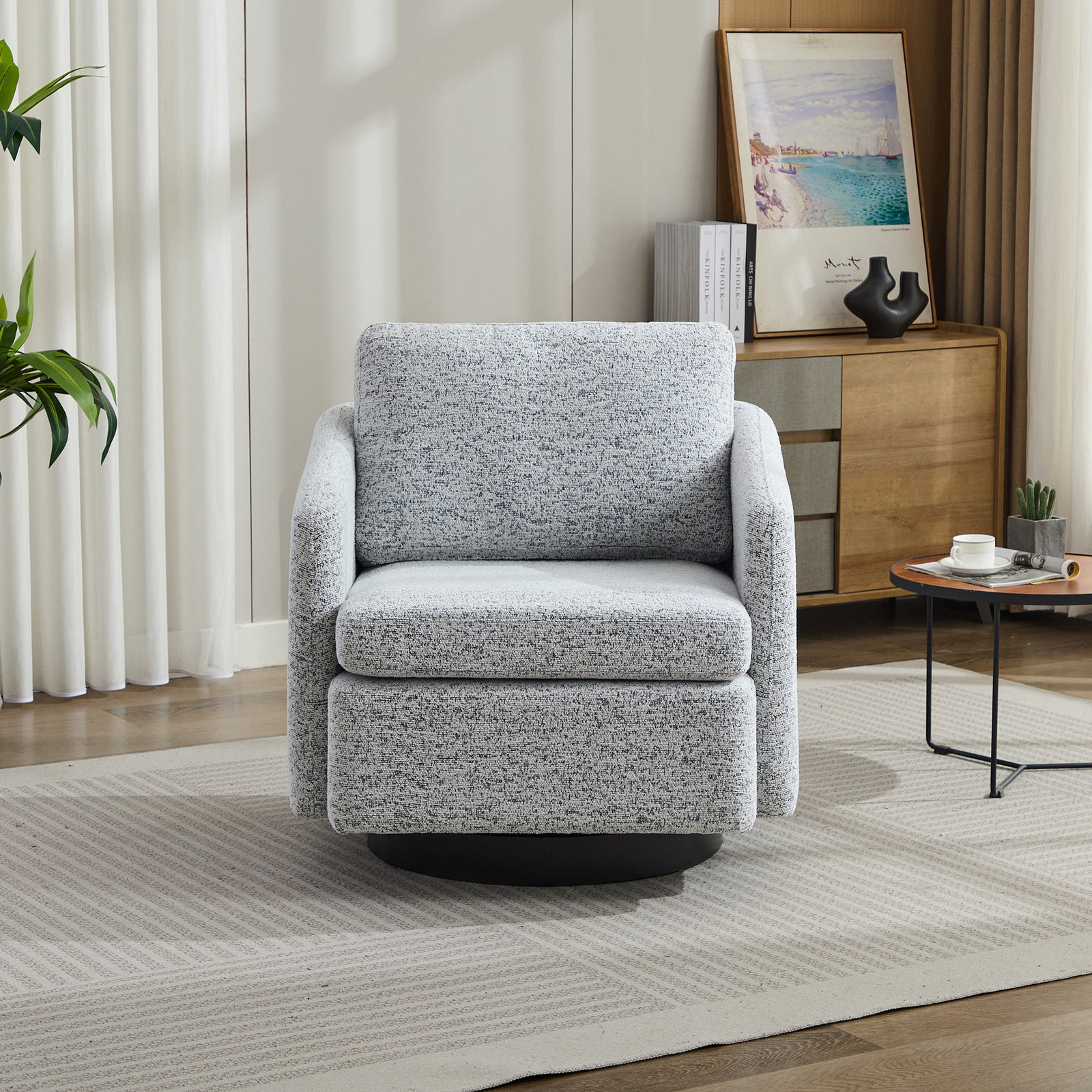 Specifications Place of Origin China Main Color White+Black Main Material Chenille Dangerous Goods #dangerFlag# Dimensions & Weights Assembled Length (in.) 31.50 Assembled Width (in.) 31.50 Assembled Height (in.) 33.46 Weight (lbs) 61.51 Product Features Our modern armchair has an aesthetically pleasing design that will enhance any living space. Its clean lines and contemporary style will blend perfectly with your existing home decor, adding a touch of sophistication and elegance to your living room. The chenille fabric material used in this armchair provides a comfortable and soft seating experience. The thick cushioned seats with inner springs offer a cozy spot for relaxation or reading. With the 360-degree swivel function, it is easy to rotate in any direction. You can enjoy the freedom of adjusting the seat without having to move the chair. This swivel accent chair is made from solid wood and plywood frames that are sturdy and durable. The high-quality wood used in the construction ensures that the chair can withstand up to 250 pounds. Easy to assemble, you can easily assemble this swivel armchairs in 10 minutes. We are committed to providing you with good products. Description Product Description Product Name Swivel Accent Chair Overall Dimensions 31.50'W x 31.50'D x 33.46'H Overall Product Weight 61.51LBS Seating Capacity 1 Upholstery Material Chenille Seat Cushion Fill Material Foam+Sinuous Back Cushion Fill Material Foam+Webbing Frame Material Solid Wood&Plywood