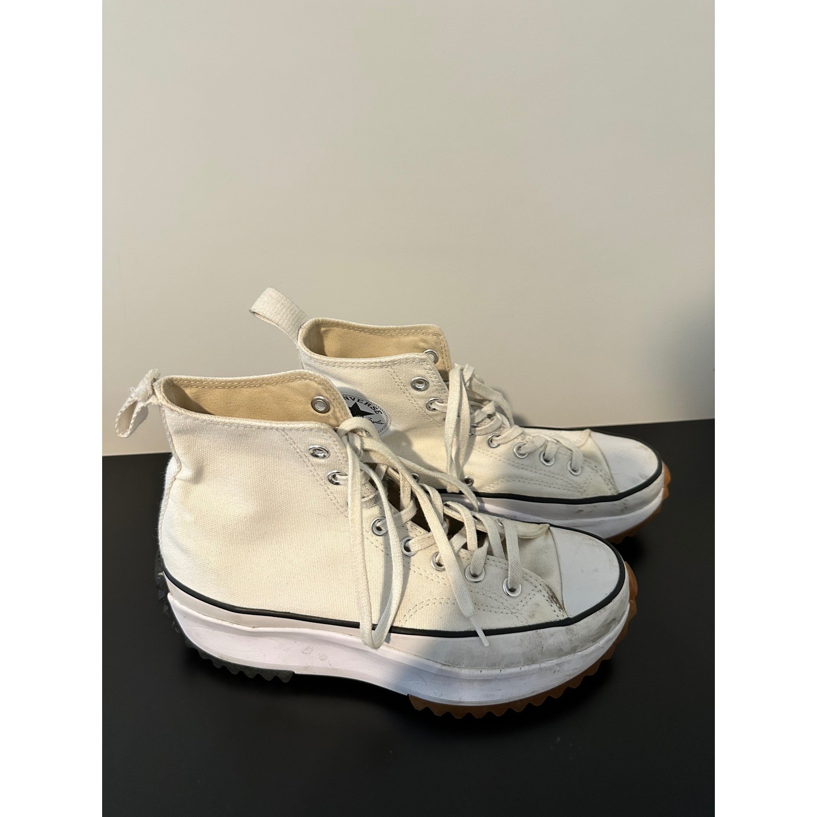 Step into bold style with these iconic Converse Run Star Hike high-top sneakers, designed to elevate your look with every stride. The crisp white canvas is ready to accompany you on urban adventures, while the striking platform sole adds an edgy, modern twist. Feel the confidence that comes from iconic design, whether you're navigating city streets or making a statement at a casual gathering. These sneakers are perfect for a day of exploring your favorite neighborhood, adding a cool vibe to a concert outfit, or simply elevating your everyday streetwear style. Needs some cleaning. Department: Women UK Shoe Size: 5.5 Theme: City, Casual Upper Material: Canvas Features: Cushioned, Comfort, Arch Support Shoe Width: Standard EU Shoe Size: 40 Style: Sneaker Type: Athletic Keywords: Converse Run Star Hike, White High Top Sneakers, Platform Converse, Women's Fashion Sneakers, Converse All Star, Chunky Sole Shoes, Canvas High Tops, Streetwear Style, Casual Sneakers, Converse Chuck Taylor, Athletic Shoes, Comfortable Footwear