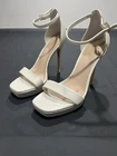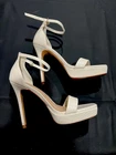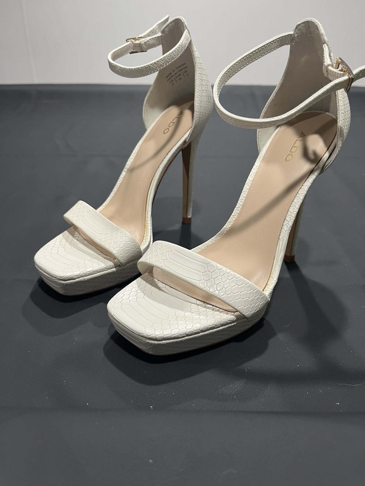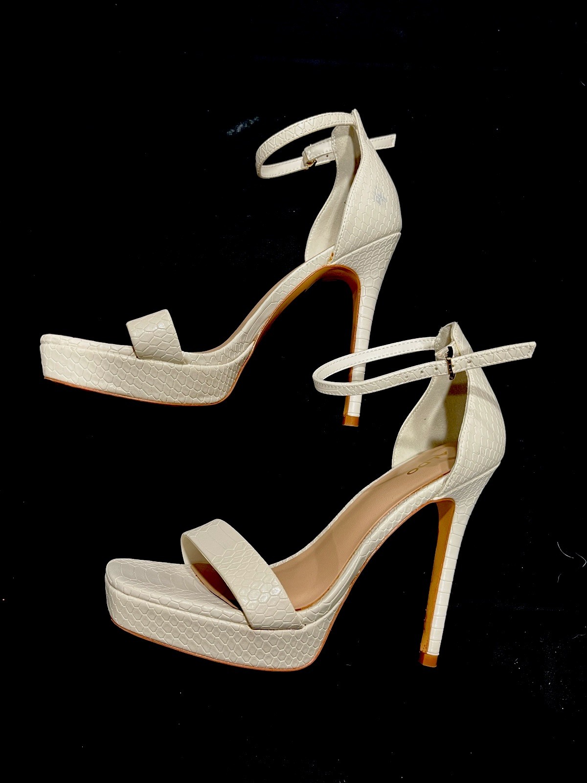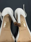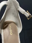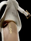 These Aldo platform heels in white/cream are a stylish choice for women in size 6. Perfect for a party or cocktail event, these stiletto heels feature a platform style for added height. Made of leather, they are ideal for the summer and spring seasons. The classic and elegant design of these heels make them a versatile option for any occasion.