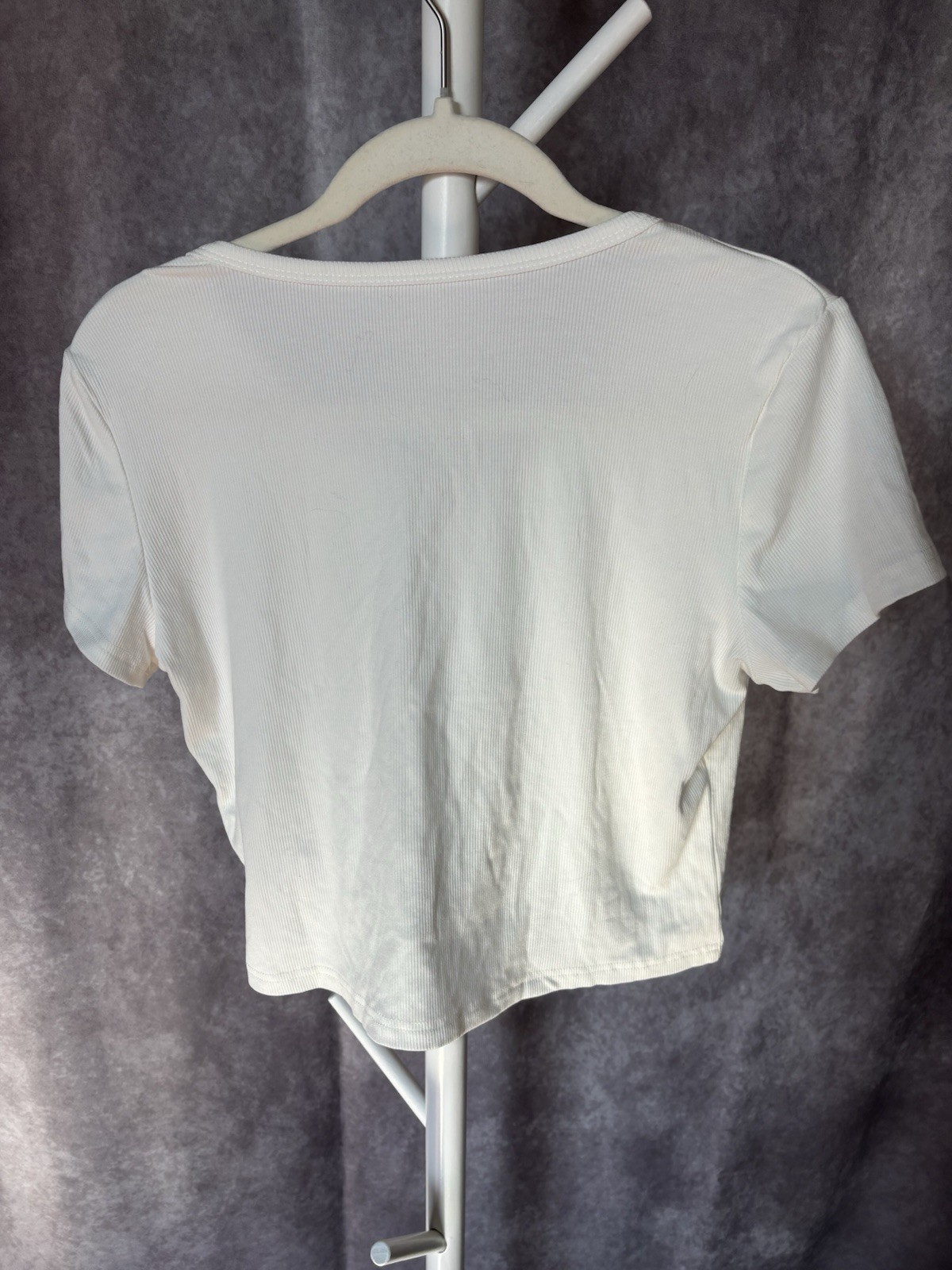 This white XL crop top by dazy is perfect for a casual summer or spring look. Made of polyester with a V-neckline and short sleeves, this pullover top is easy to care for with machine washable fabric. The solid color and regular fit make it a versatile and stylish option for any wardrobe.