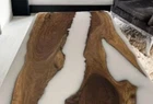 White Epoxy Wooden Resin River Table Top, Live Edge Epoxy Table Home Decor Art